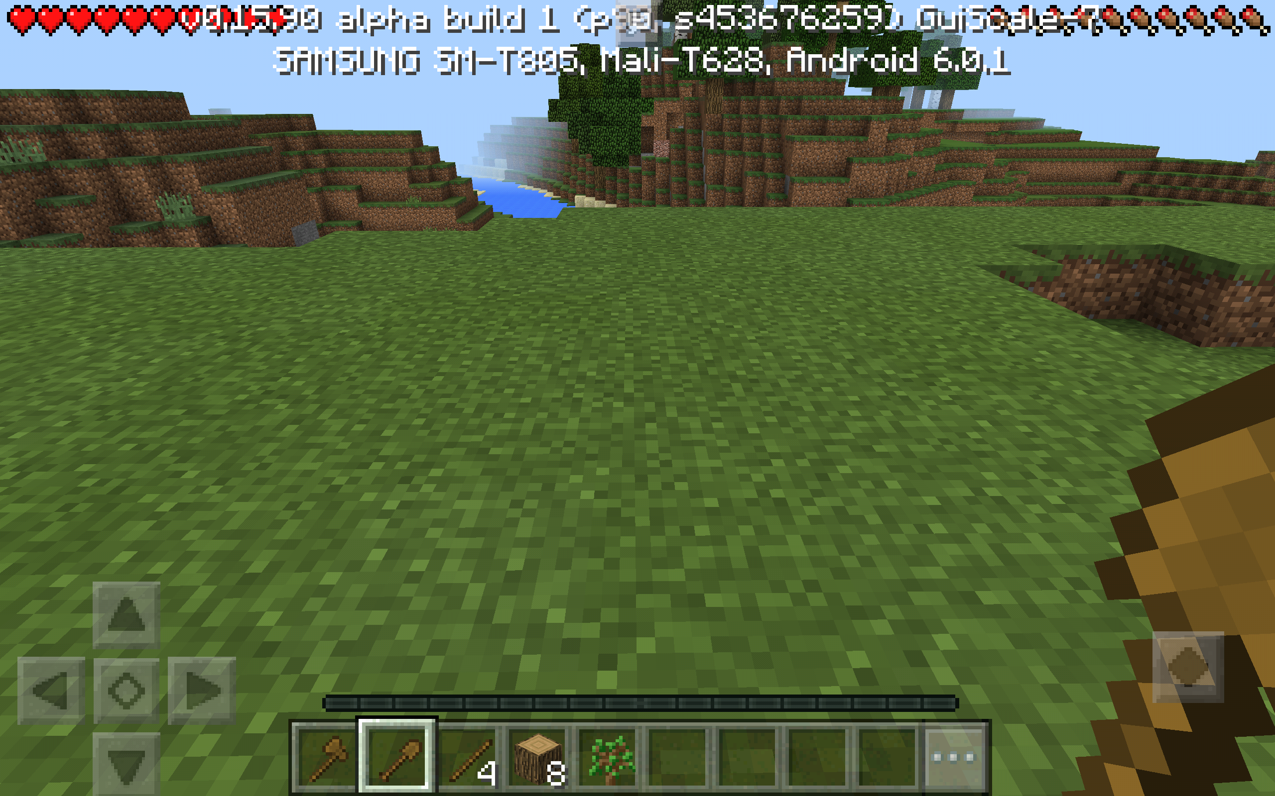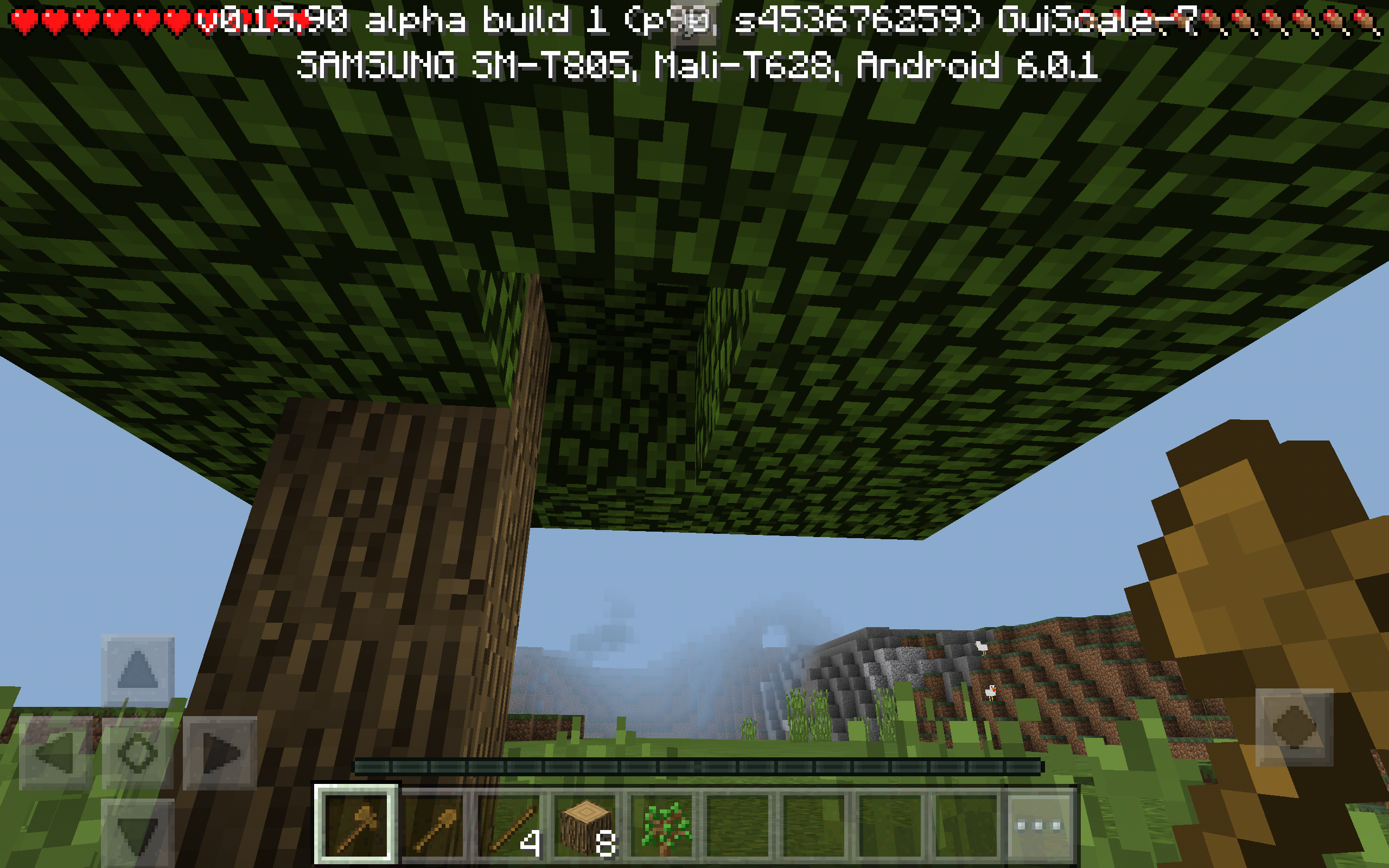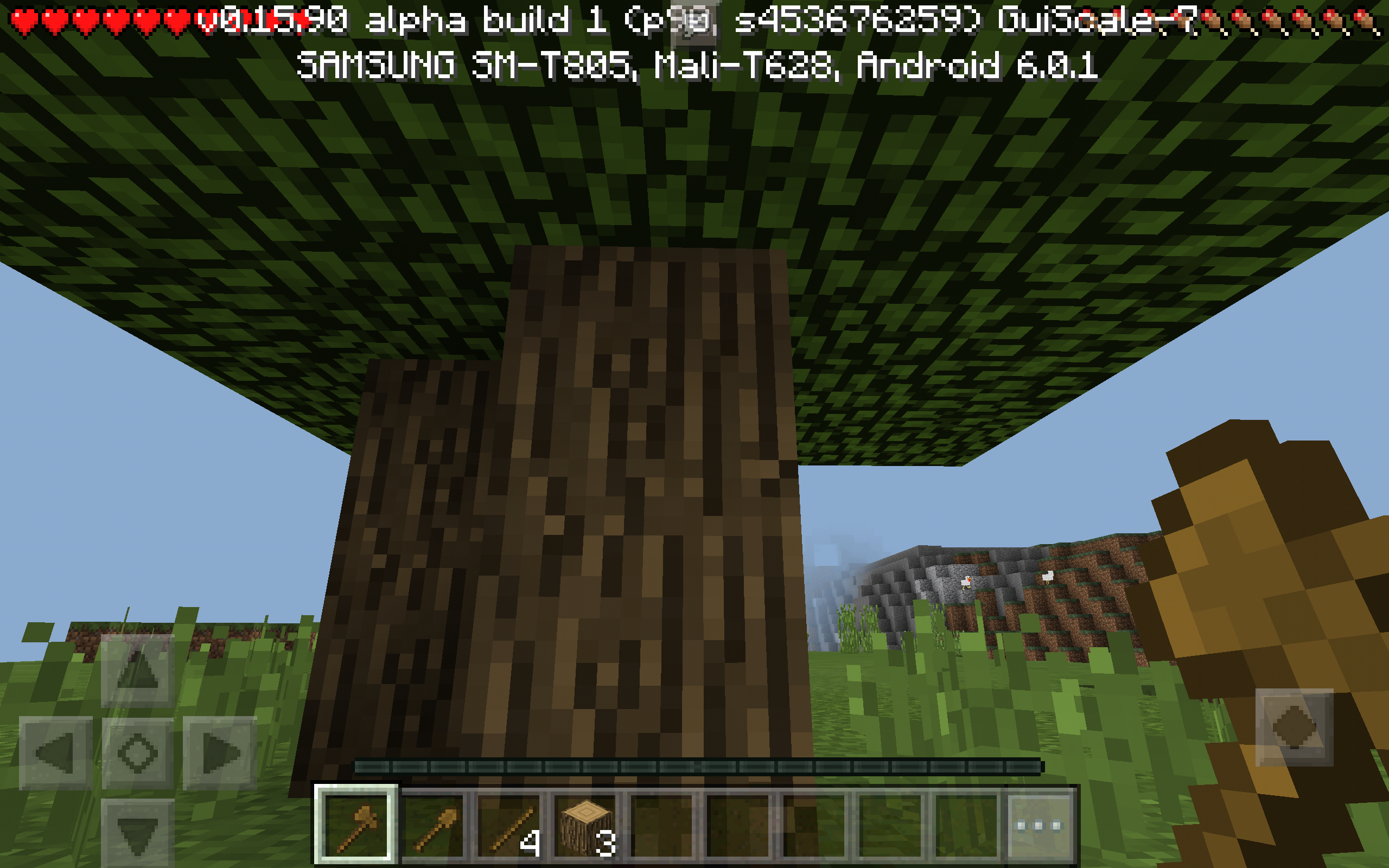 Screenshot 1 shows me having a axe in my hand (survival) before cutting a tree.
