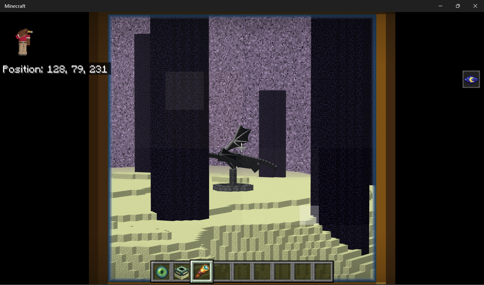 Observe the frozen animation of the Ender Dragon.