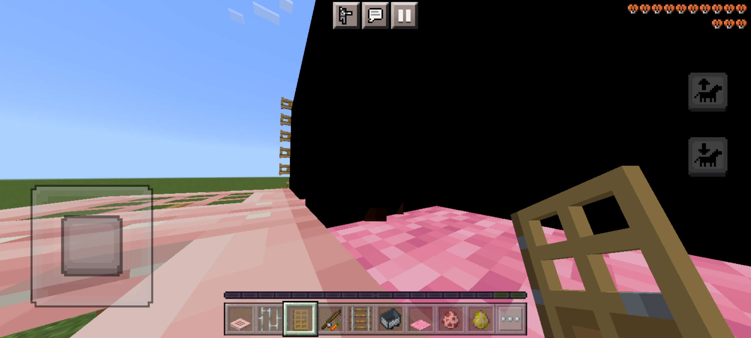 Riding an entity through gates and carpet create the "black box" effect as if your head is in a block. Doesn't affect gates which are open. I have crouch through 1.5 block gap experiment enabled.