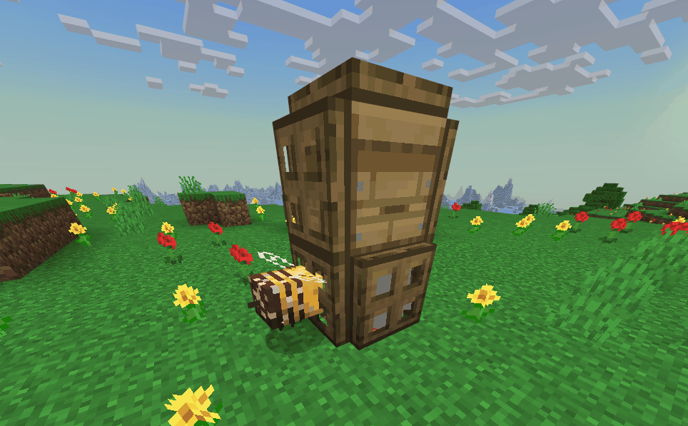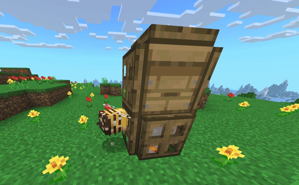 Bees occasionally get stuck trying to pathfind back into their beehive if the underside is obstructed.