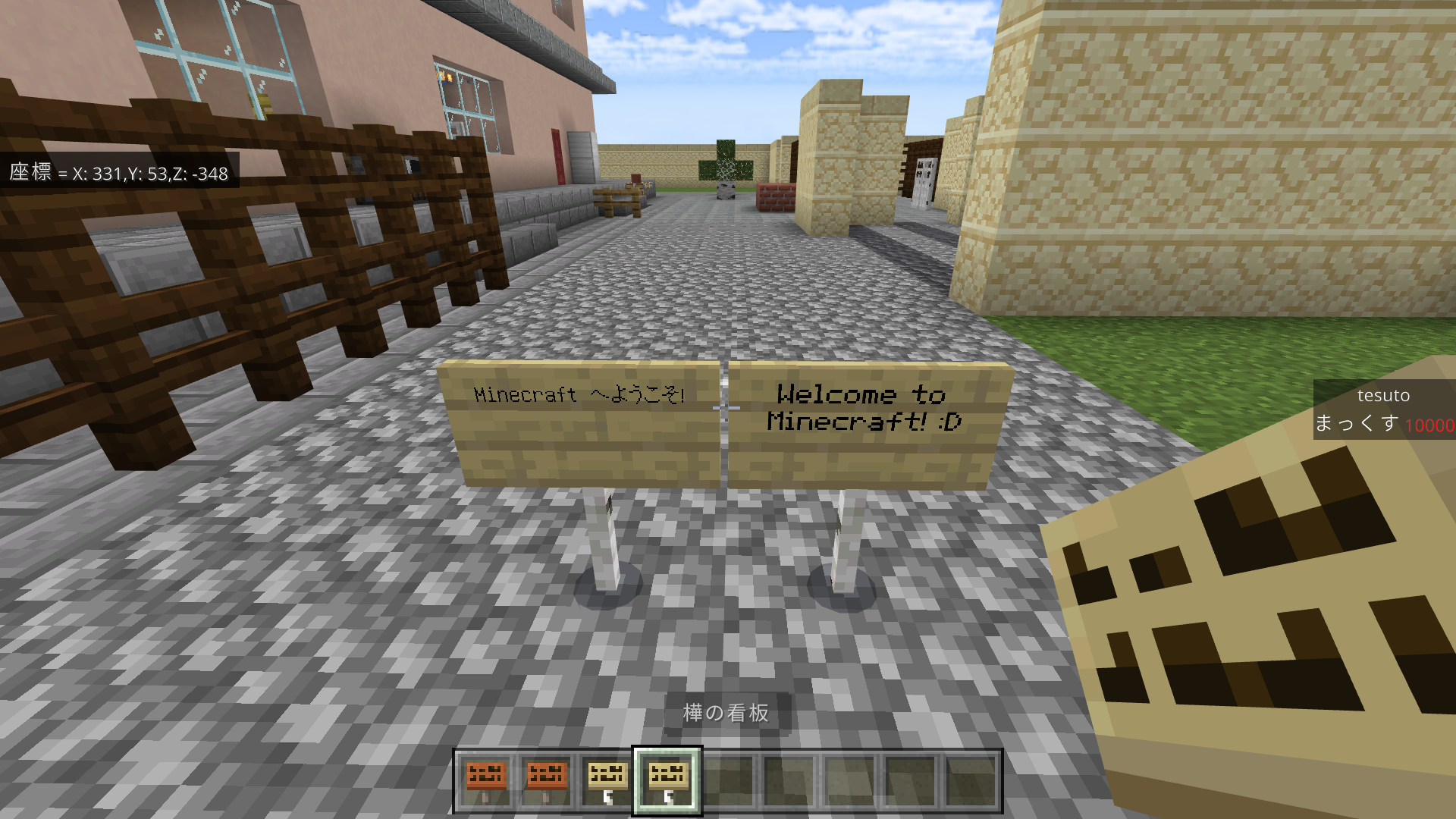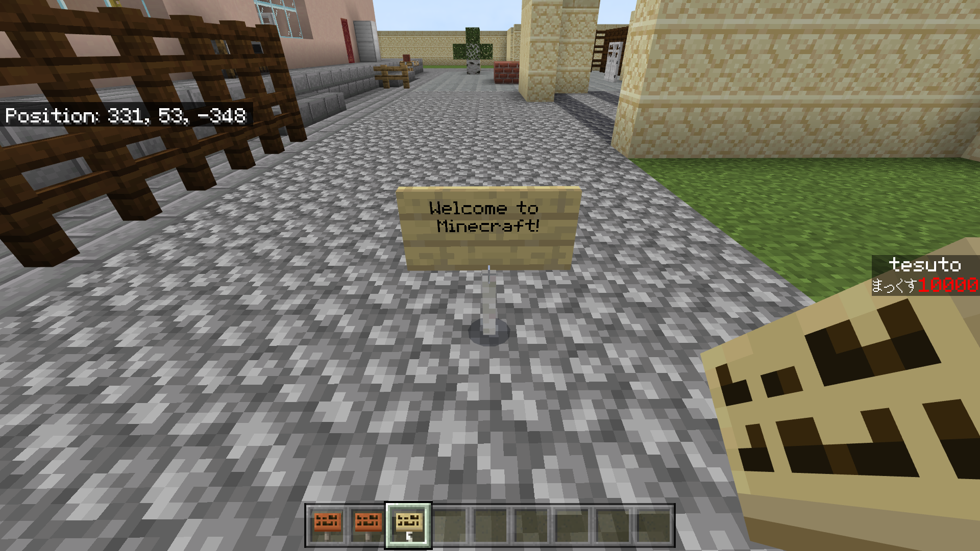 2. The sign will read "Welcome to Minecraft!" (if language is English)