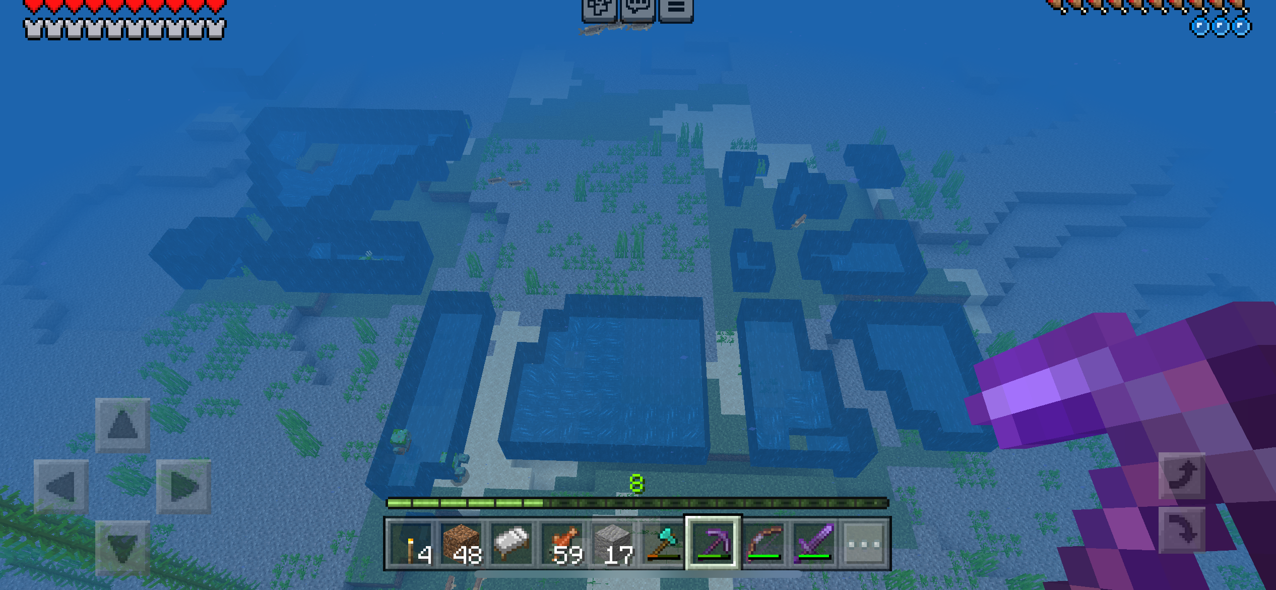 No 3rd party app was used or any other app modification. These air pocket and grass structures under water were discovered in the official Minecraft PE iOS edition on survival mode.