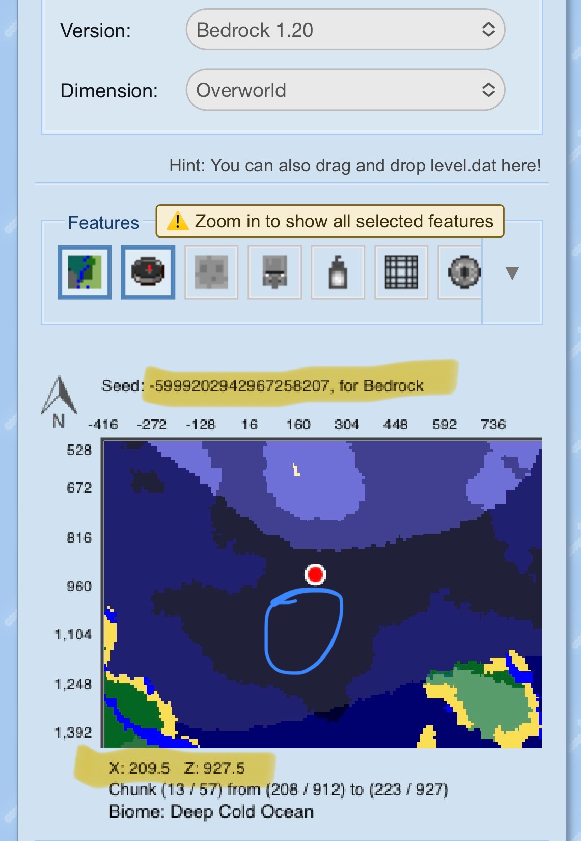 The screen grabs included show the structures I'm referring to and the "chunk base" picture shows the Minecraft Bedrock Seed Number along with the coordinates to locate the structures.