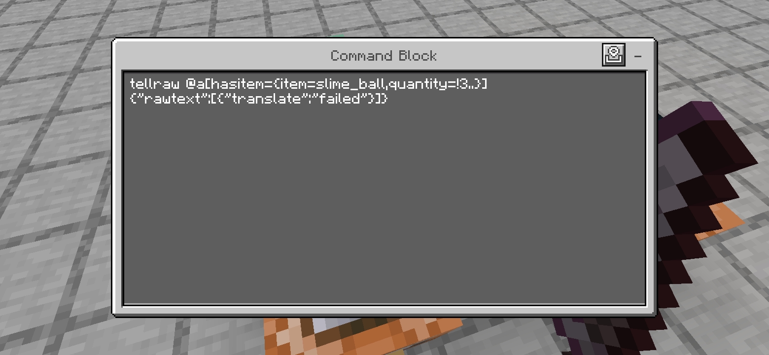 It shows that when I have more than 3 slime balls, it will give me a tnt and remove three slime balls, otherwise it will show me the failed message.