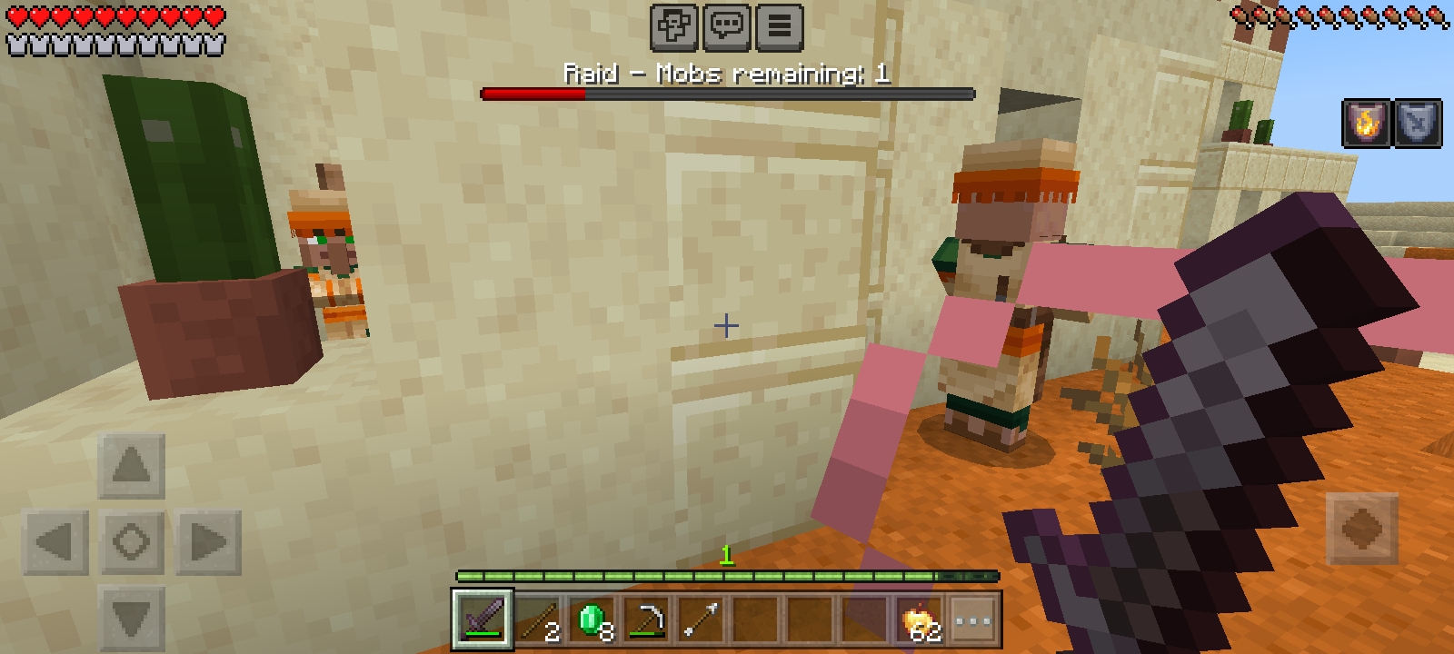 I spent several minutes trying to find it. 1 remaining illager I searched every nook and cranny of the village but I couldn't find any illagers left. This problem gave me a headache. I think illagers should not disappear during attacks. illagers should help find targets such as iron golem villager players and kill them like in Java version