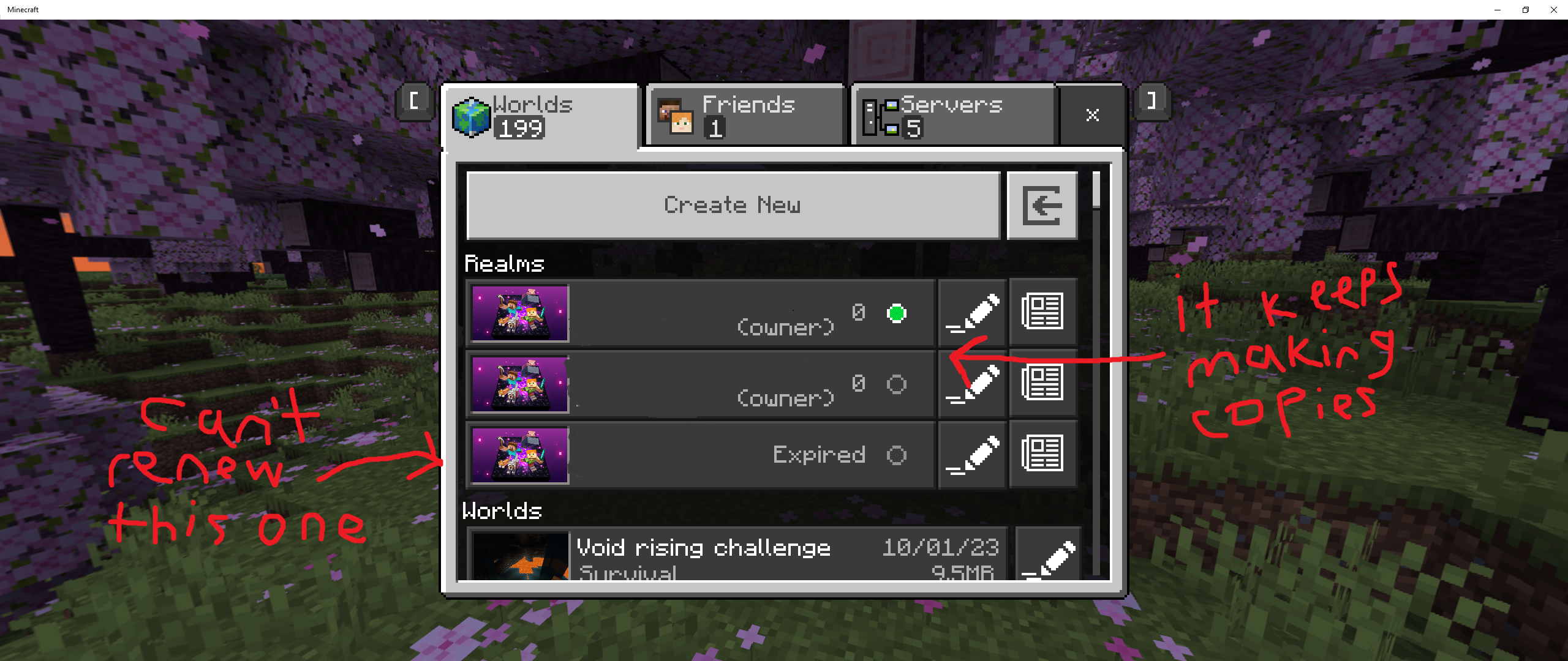 Whenever I try to renew my renew my realm, it instead makes a new one. The one I try to renew is still expired. I don't know if this should be private?