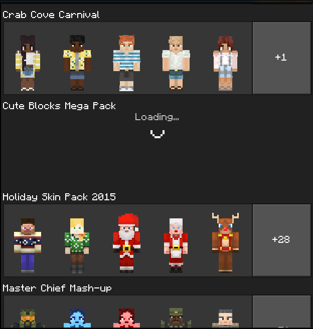 When I try to edit my character and choose from the classic skins list, one of the packs refuses to load.