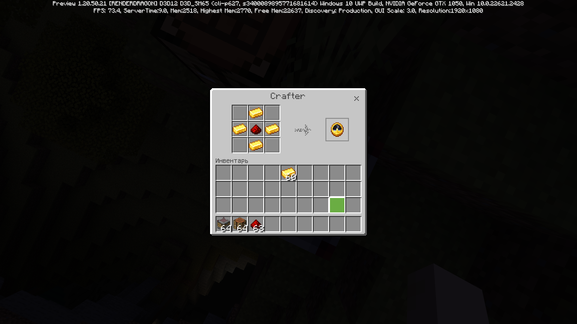 Compasses, Clocks and Recovery Compasses work normally within the output slot of the crafter. This results in the player not having to craft Compasses, Clocks and Recovery Compasses to learn their value.