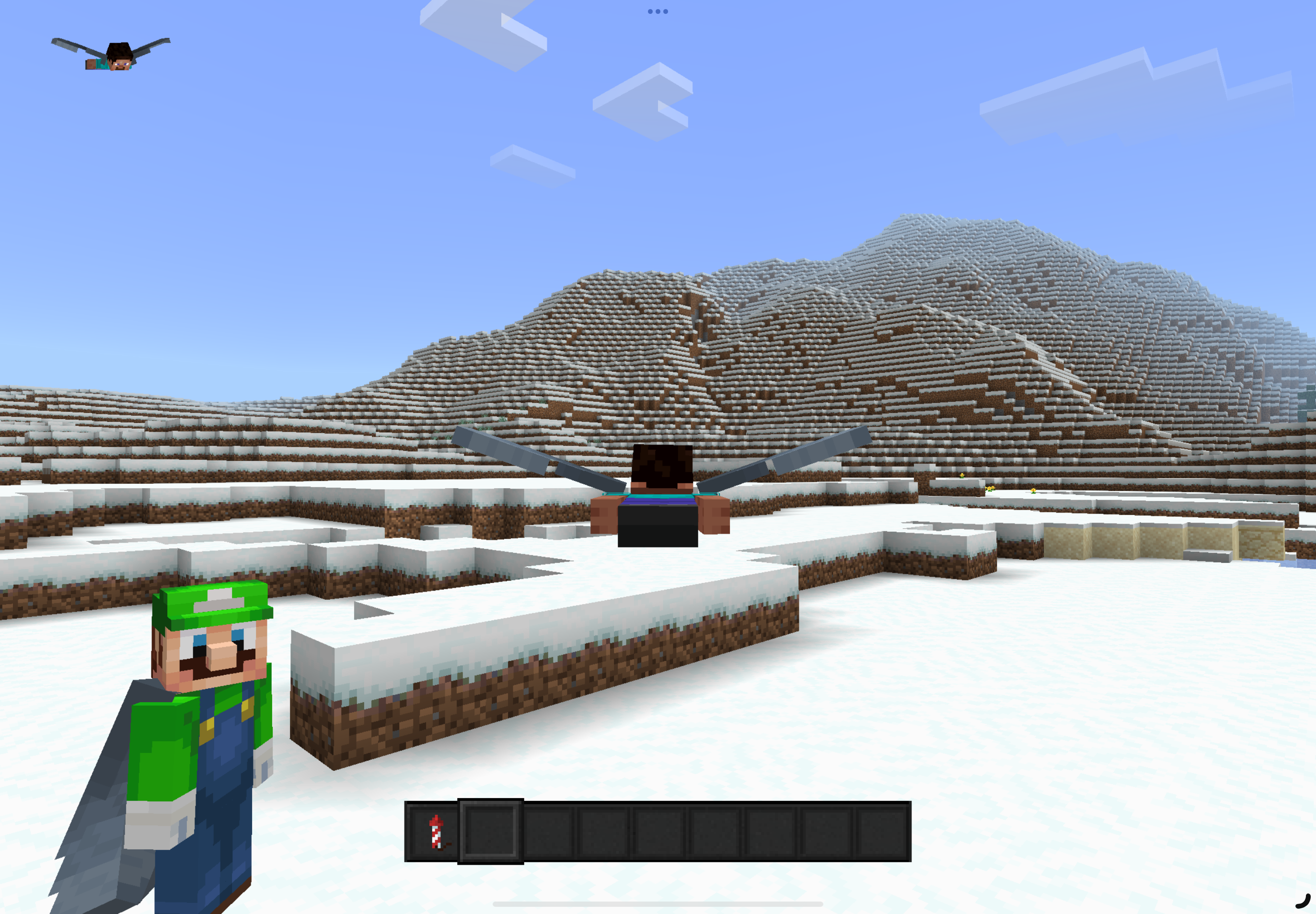 The flight animation with the elytra is shown wrong to other players in split screen (before I was on an online server, and players who used the elytra were shown normally).