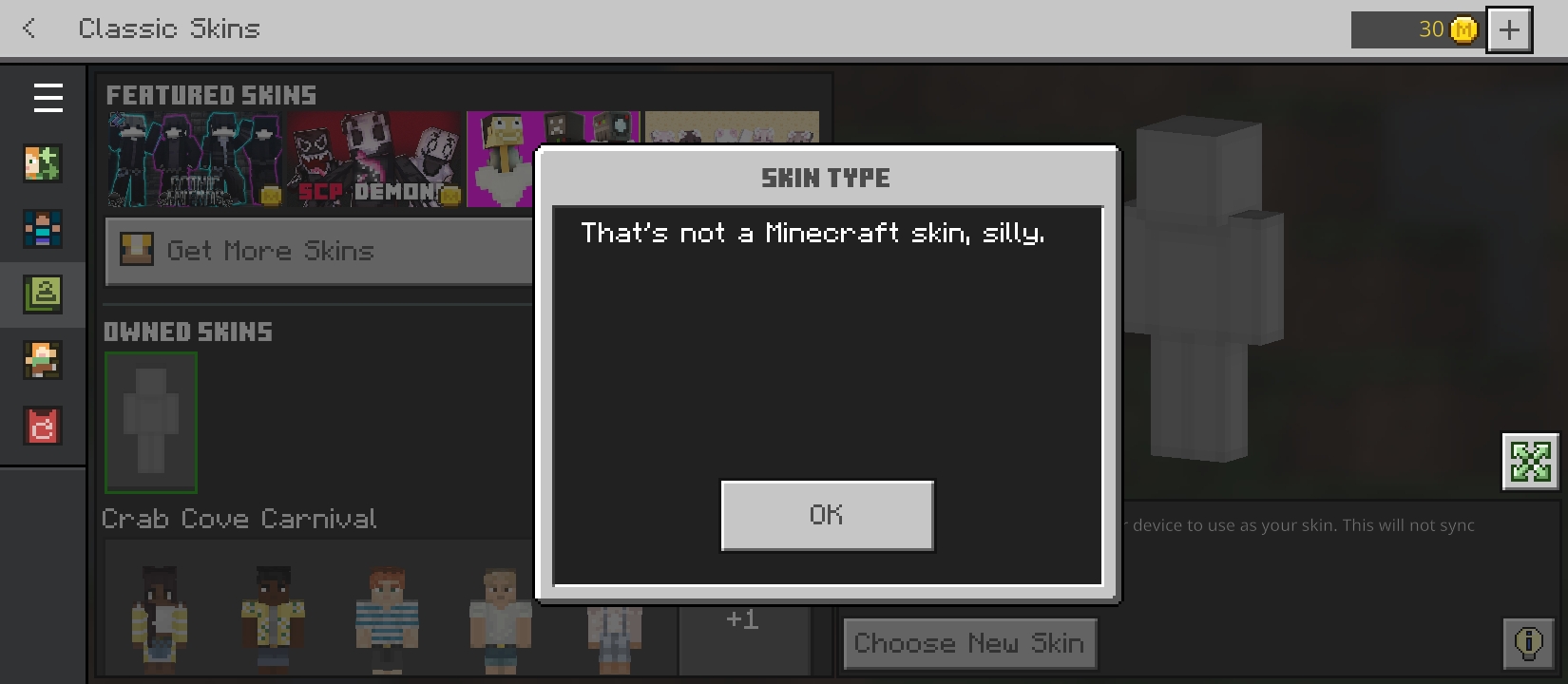 Help, why i can't use my skin??