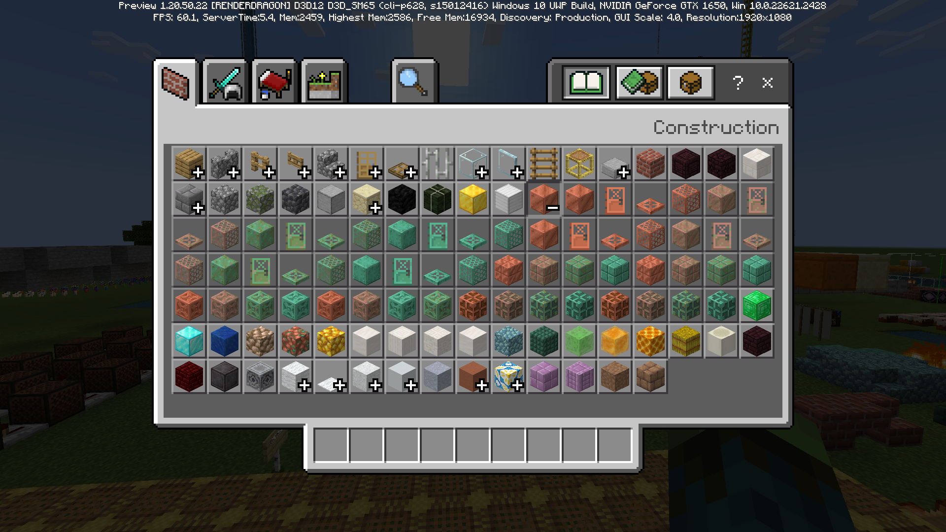With the addition of new copper building blocks, the Copper group in the creative inventory is now a complete mess.