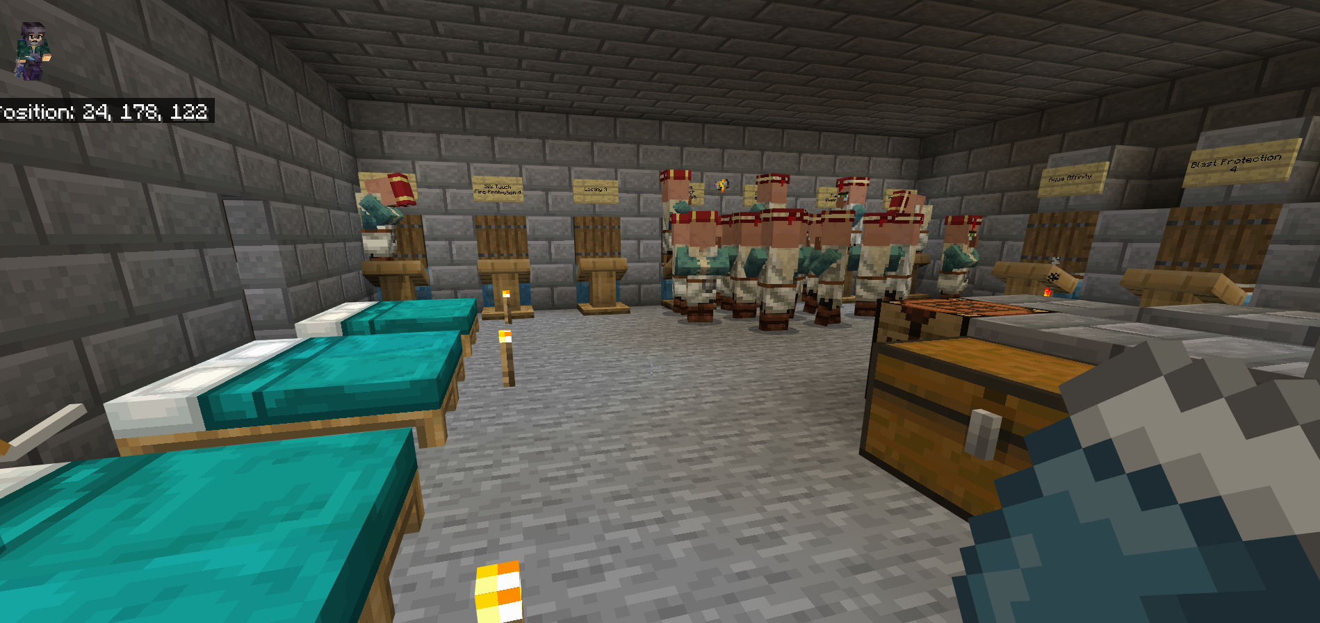 And a few villagers lay on the air like there is a bed, same place, and it was inside the wall so some villagers dead...