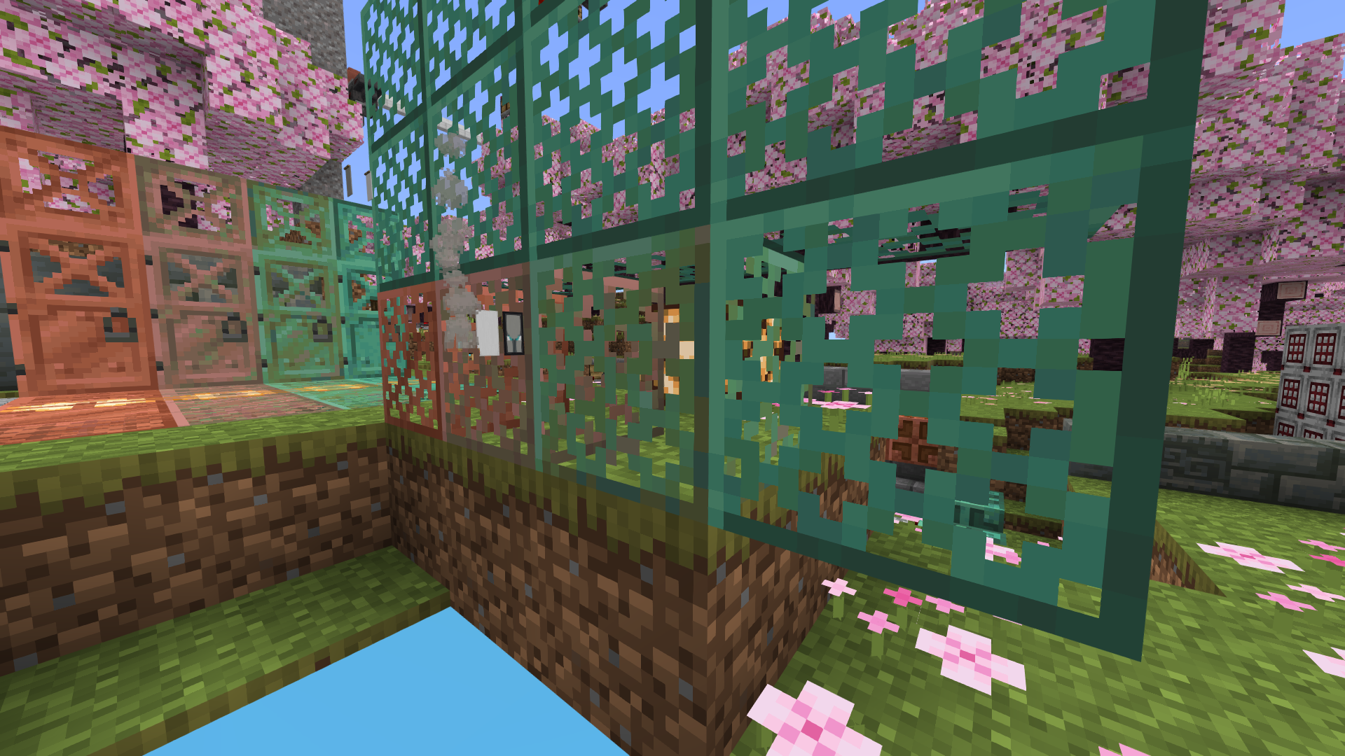 The block material for the copper grate should be 'alpha_test', not 'blend' because the textures of copper grates are not semi-transparent.