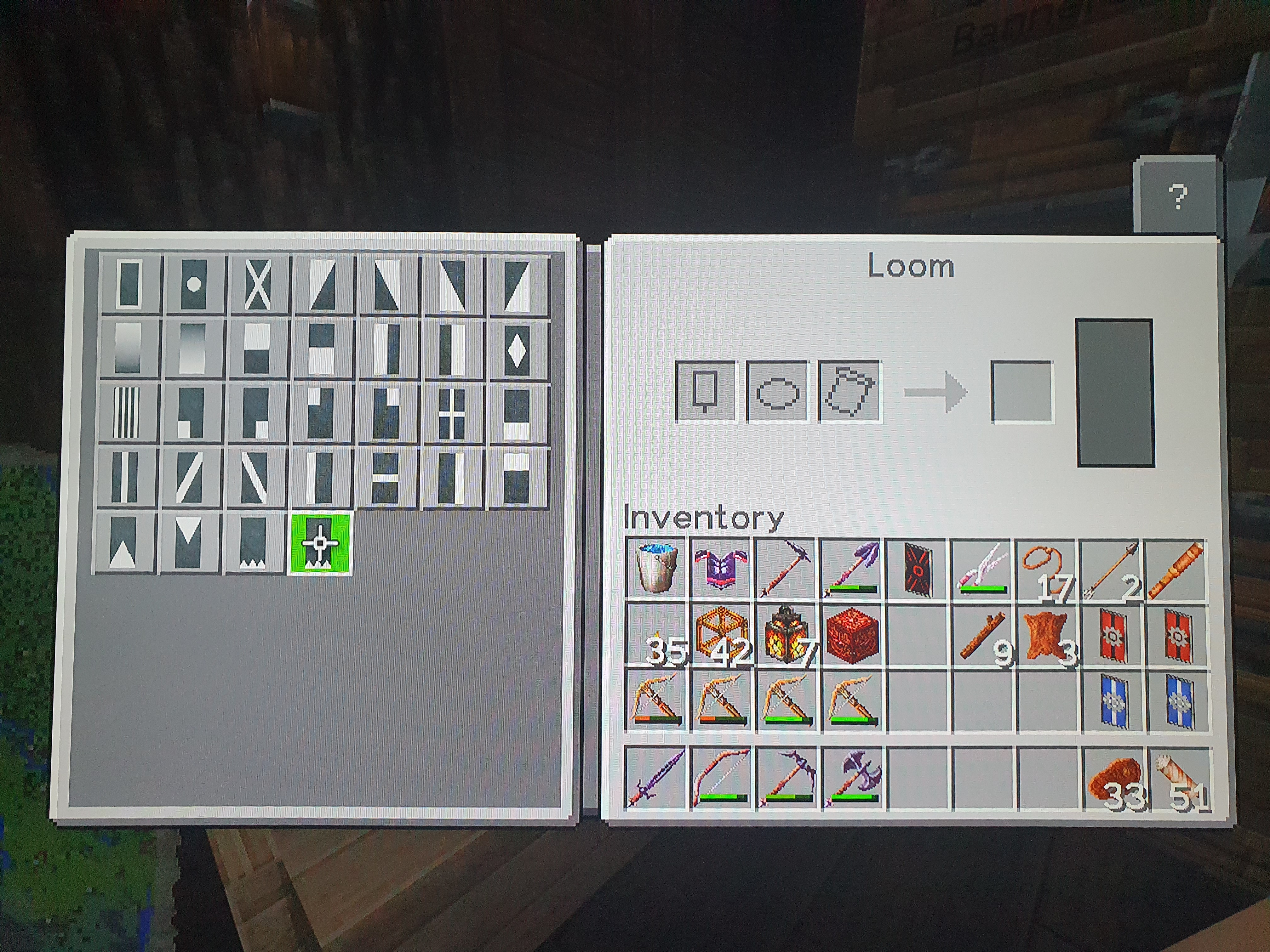 So I've seen this issue for quite a long time and it stops me from creating banners I want. For some reason there are two base indented patterns on the loom instead of one chief indented and one base indented and even if I try to add the chief indented the old fashioned way it applies it to the banner but doesn't actually appear on the banner.