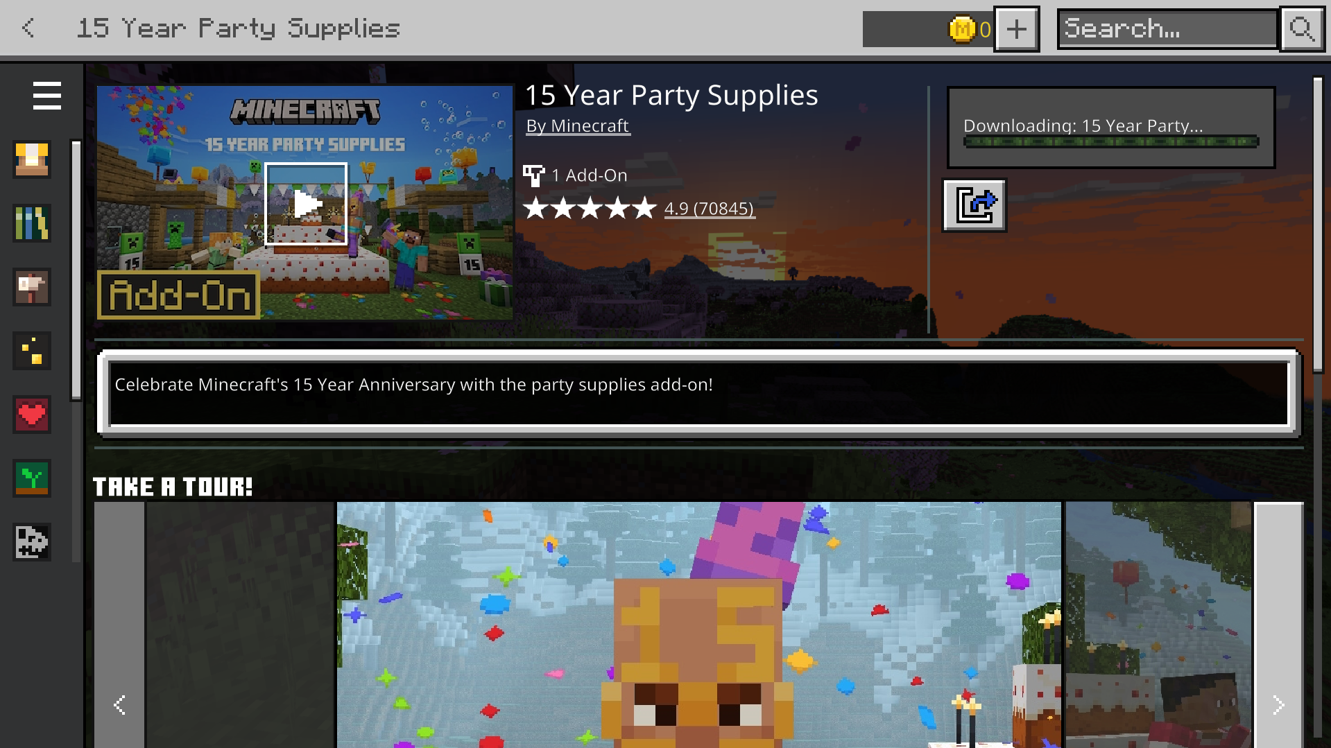 "Furniture Add-On" by Honeyfrost is currently frozen at "Downloading" 0% for my child on iPad (v1.21.2). This has persisted after clearing the marketplace cache multiple times, killing the app and restarting, signing out of the xbox account, signing back in, killing the app again and again...and it never even gives me the option to click download again; it always says "Downloading" even when completely signed out of the xbox account with the big banner that says "none of your add-ons are available because you're not signed in" or whatever.