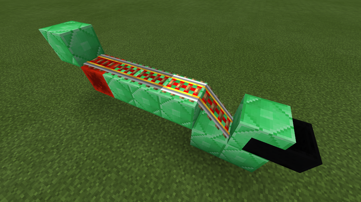3. The minecart will automatically start moving, go down the slanted rail, and get stuck in the block.