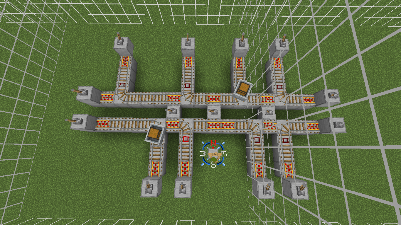 Foxynotail texture pack for chunk border and directional axes/compass using armor stands were used for visual aids.
