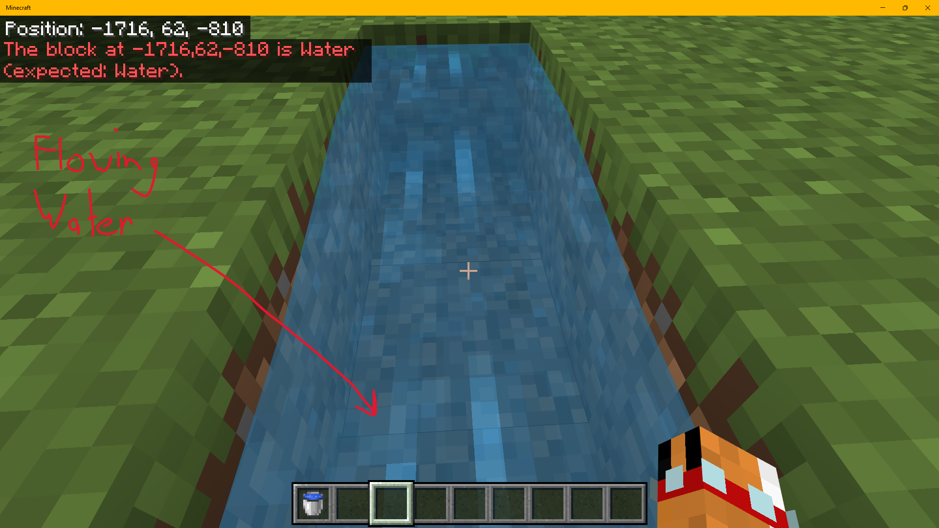 2) Run the testforblock command to check for flowing water at your feet