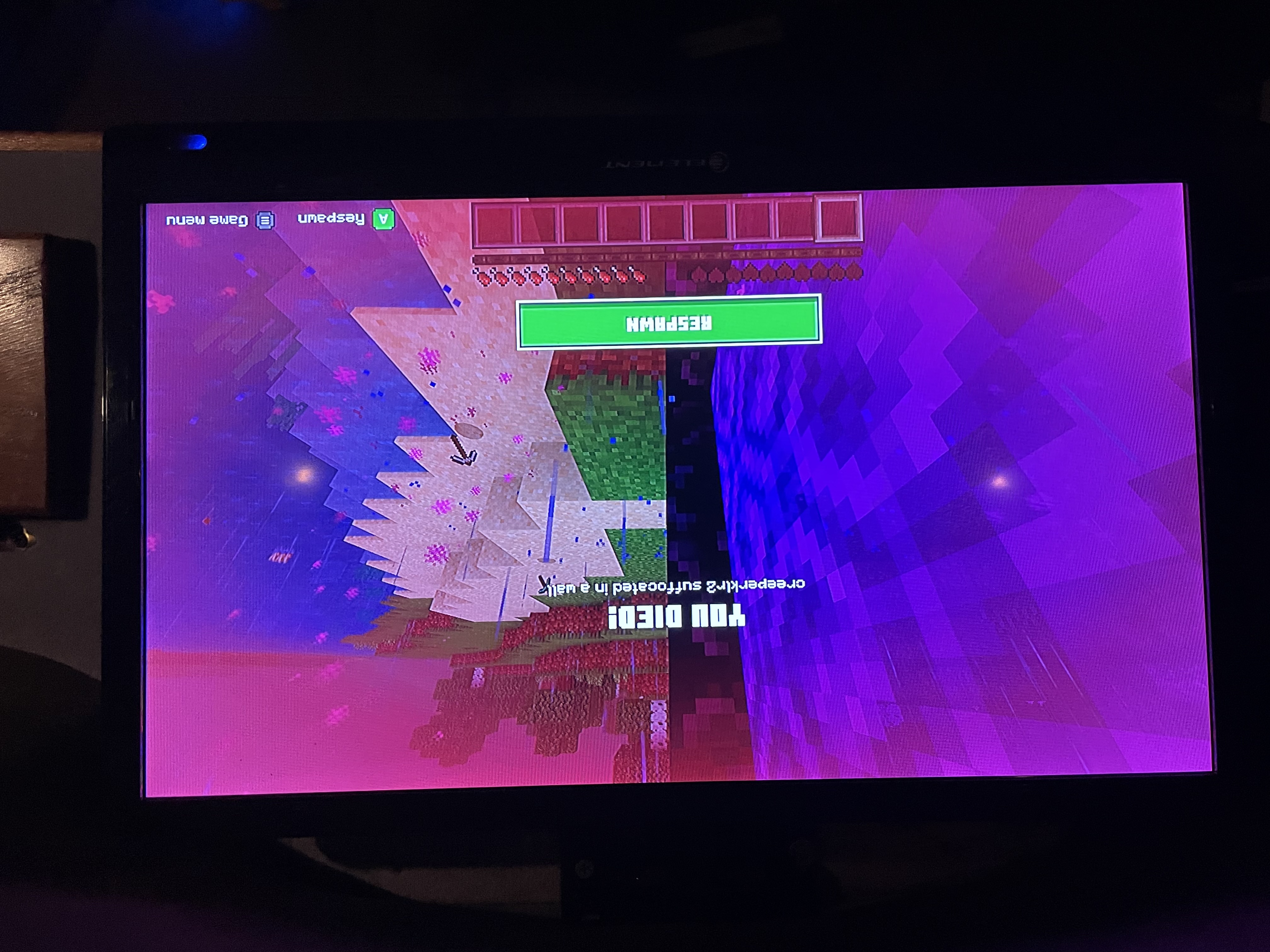 I went even further south in the nether, and made another portal. Walked through it…and was stuck on the “building terrain” screen for over 15 seconds, while I’m hearing myself dying. Finally loads just in time for me to “suffocate in a wall”…there was no wall. It was a field, and the portal.
