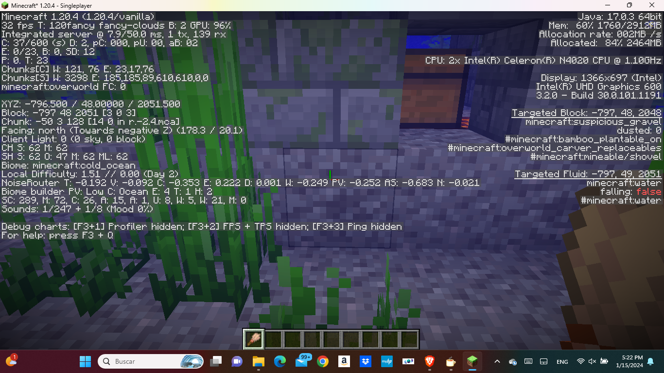 Coordinates: /tp 114 71 -4Gravel and dirt: