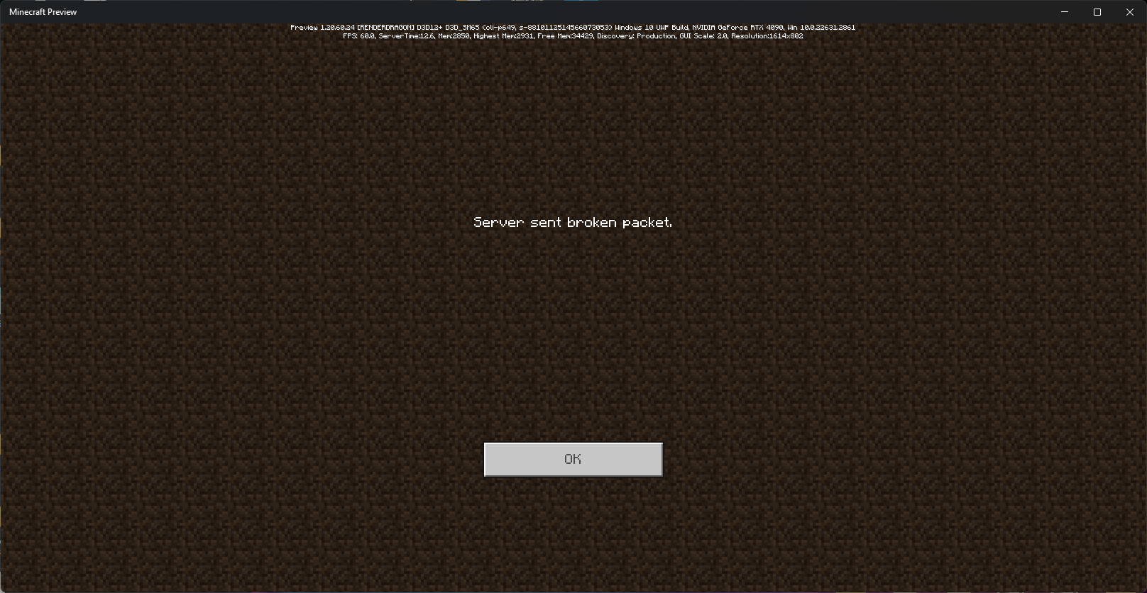 Two worlds created with Preview 1.20.60.24 eventually became unloadable due to a corruption issue which causes the worlds to fail to load with a "Server sent broken packet message." The first world failed after saving it for the evening and trying to load it the next day. The second world failed when returning from the Nether after approximately 28 hours of play. Both worlds had multiple explored level 4 maps if that is helpful to reproduce the issue.