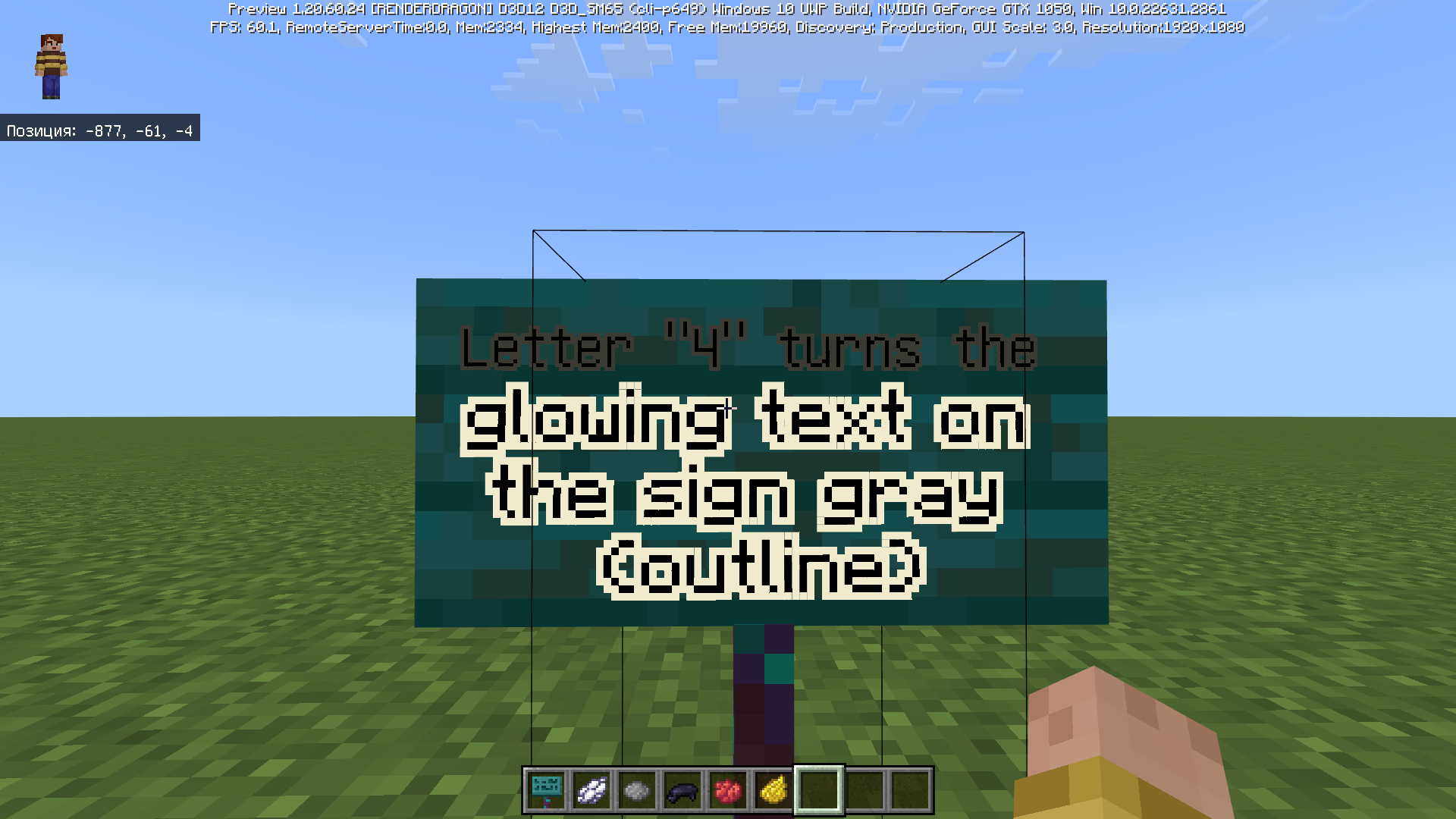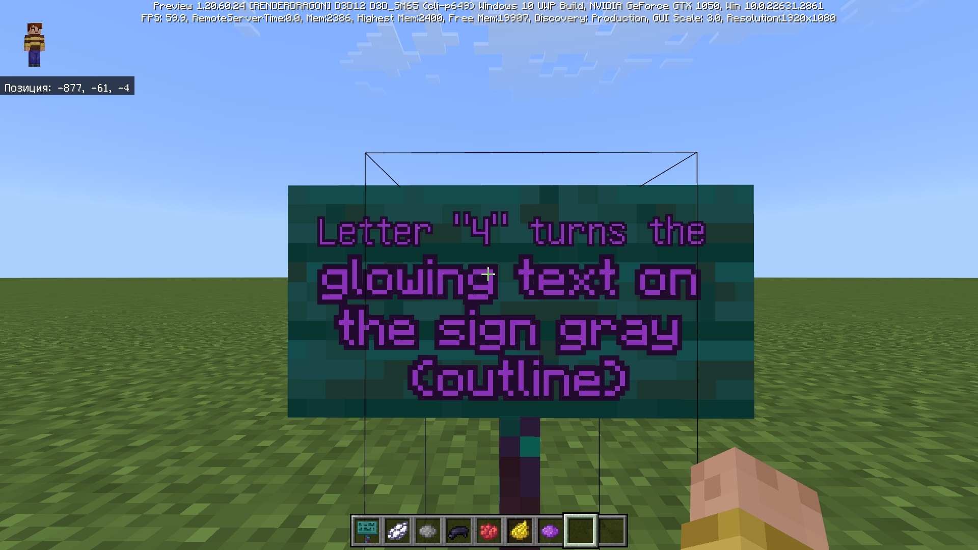 The Cyrillic capital letter "Ч" makes the line of glowing text (outline) gray. Other letters/symbols have no problems (I checked all the letters that are on the keyboard - only Cyrillic letters). The small letter "ч" has no problem. Note: for dyed signs, the outline becomes the corresponding correct color.