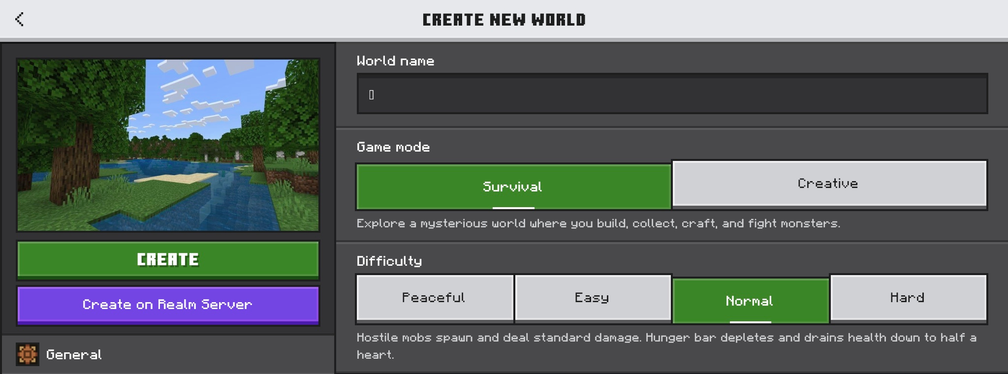copy paste "" into the create new world text box that uses ore ui