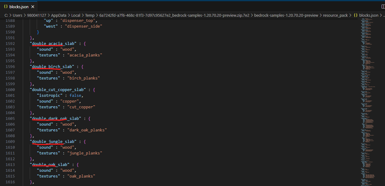 In the Preview 1.20.70.20 the oak, spruce, birch, jungle, acacia, and, dark oak slabs and double slabs IDs got split, but the ID used in the blocks.json file uses the incorrect ID for the double slabs.