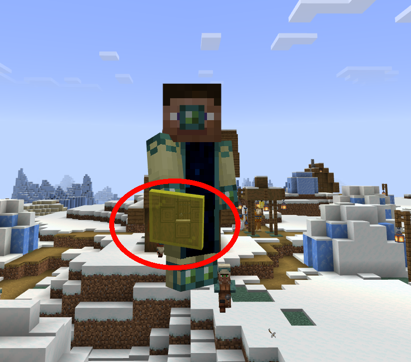 The player and villager are visible behind a stained glass pane held in hand.