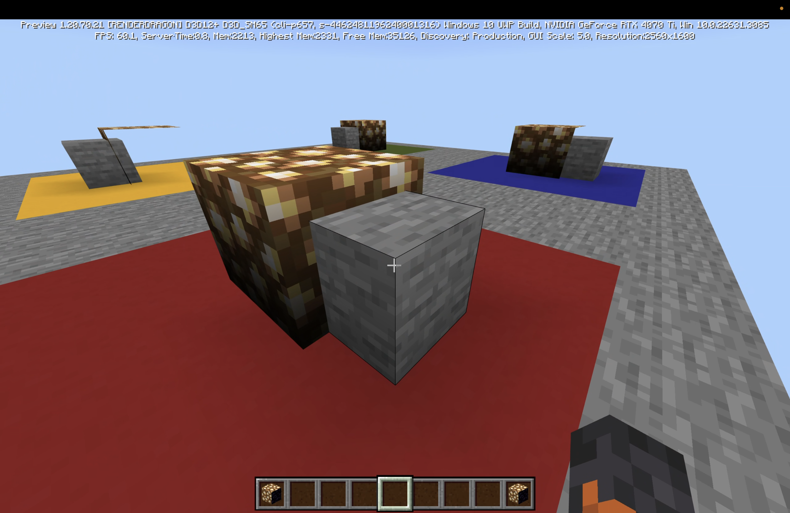 ), the working example is set above both blue and green concrete. The bugged example is set above red and yellow concrete. All custom blocks have been scaled to more easily demonstrate the culling.