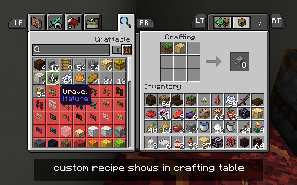 Recipes from custom blocks that use minecraft:crafting_table component are locked.