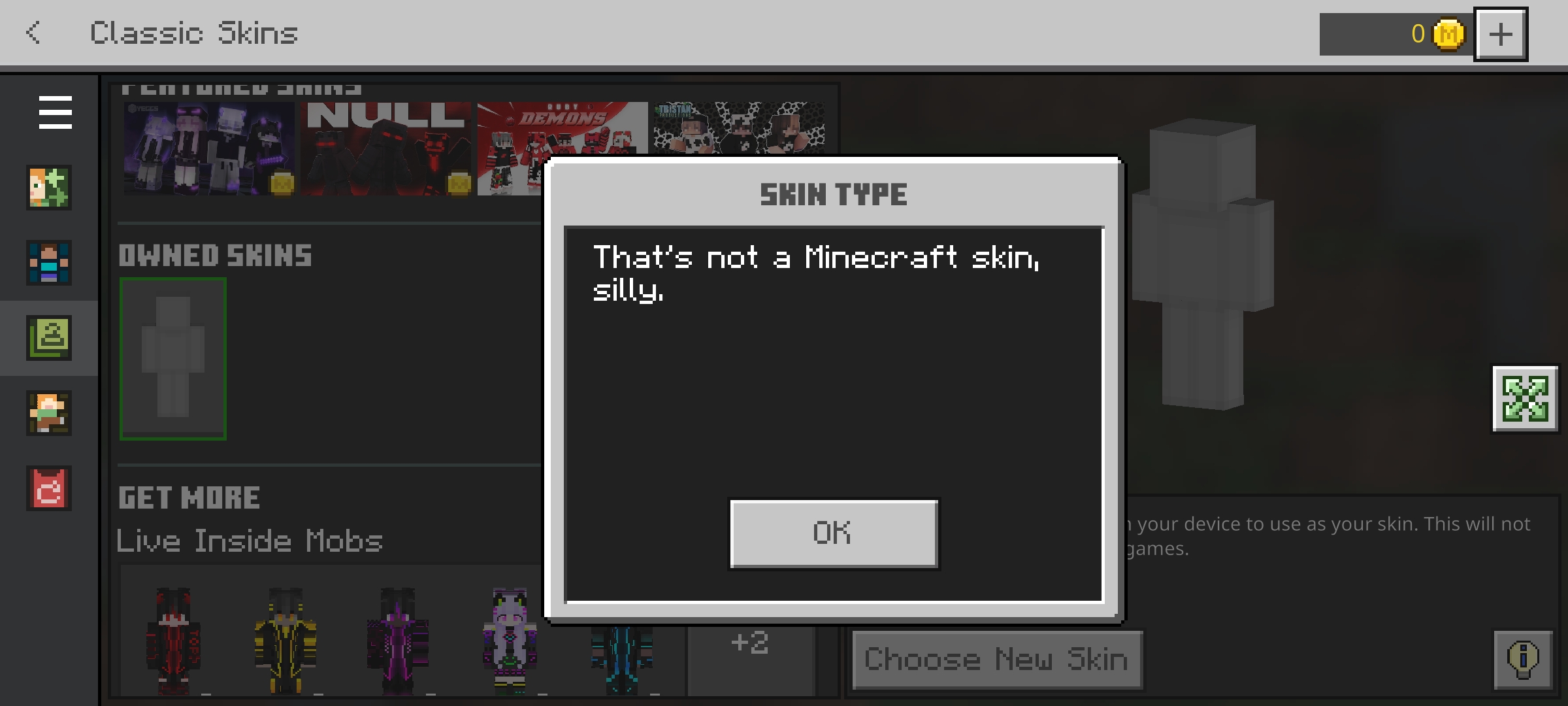 When I select a skin from the gallery, it gives an error (my skin has no problem and I could choose it in previous versions)