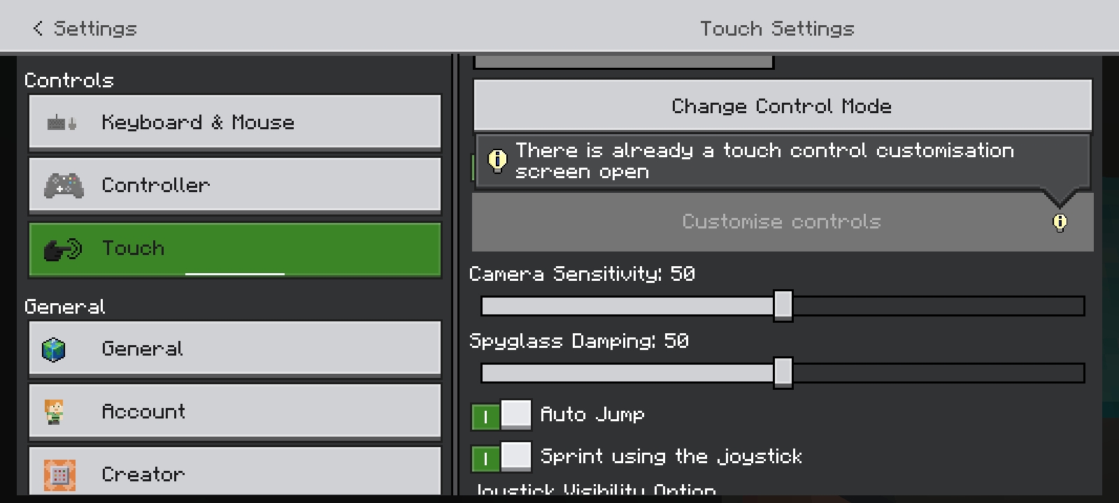 I enabled some texture packs in my world but when I tried to open customise controls screen it says " customise controls screen is already open " even it is not .