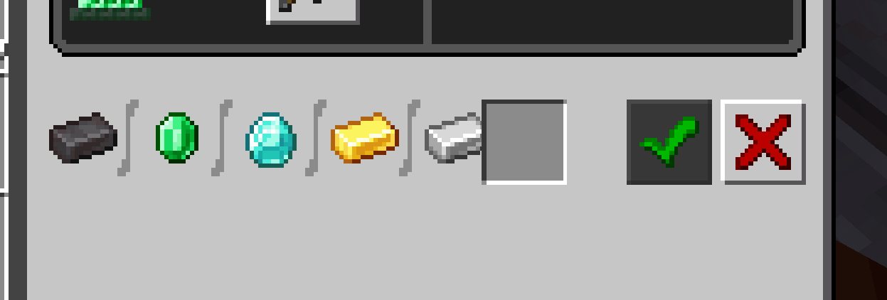 Put any minerals (Diamond, Emerald, Gold Ingot, Iron Ingot, or Netherite Ingot) into payment slot