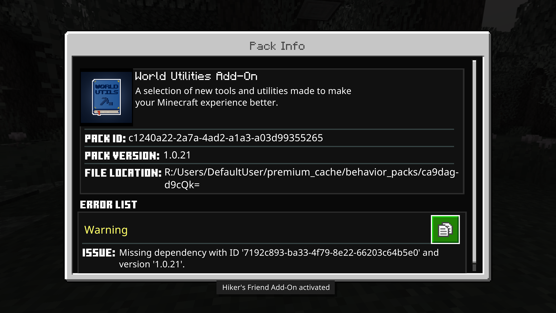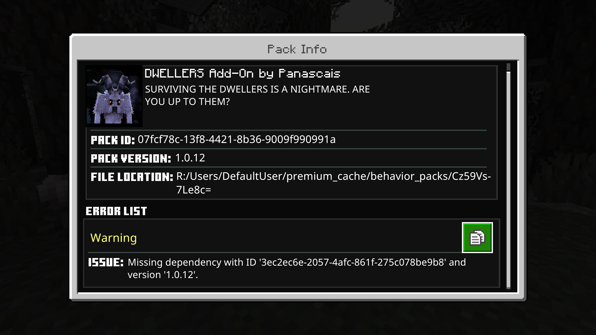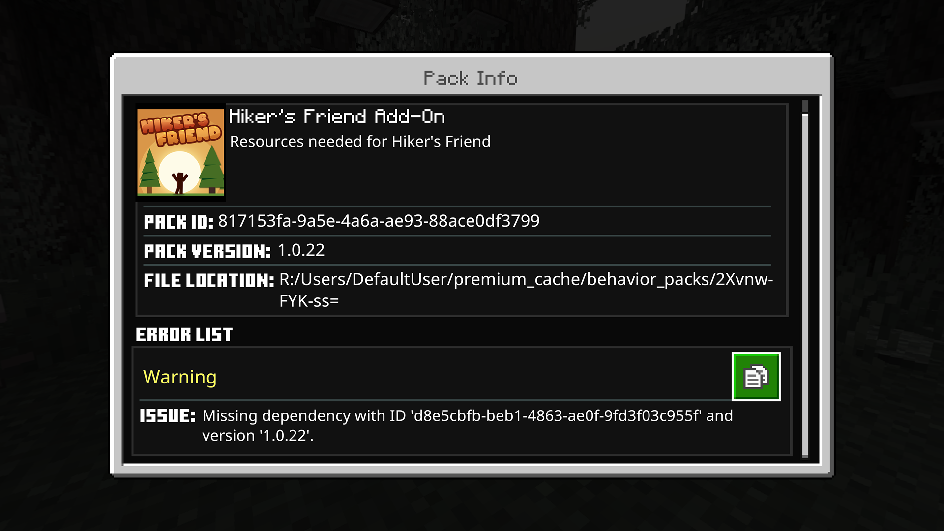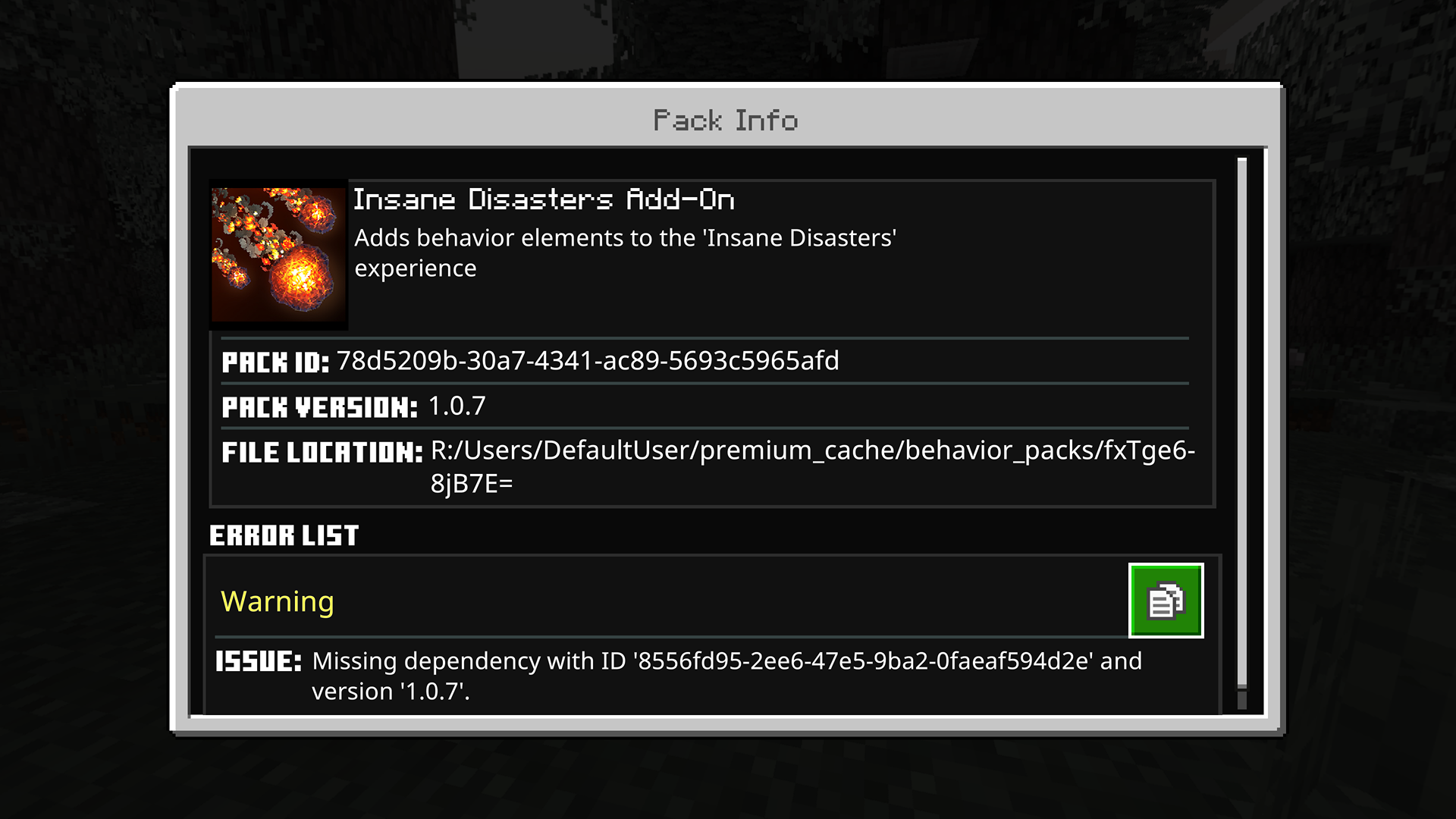 All add-ons from marketplace has missing dependency IDs errors with their versions making the world's crash. Each add-on packs gotten this error every time we tried to start a world with them on it.