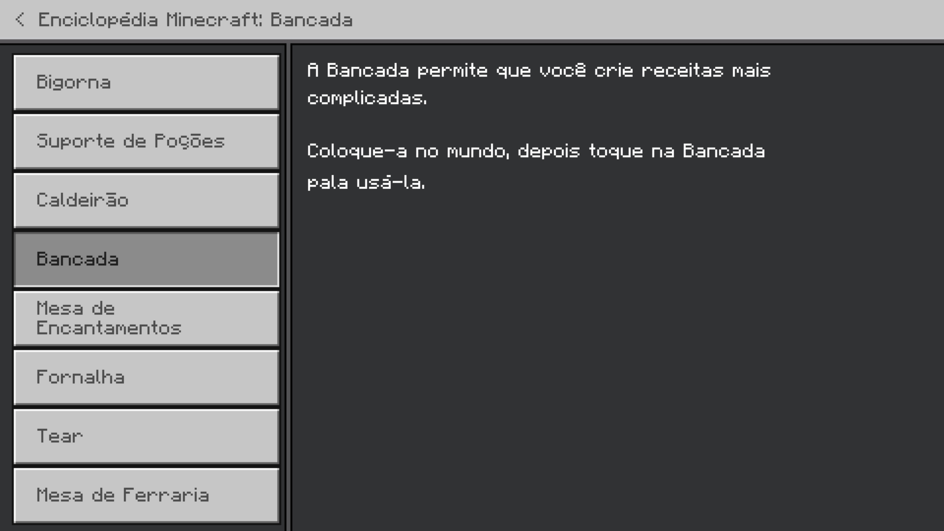 The item name on the achievement screen is "bancada de trabalho", which was the name of the item before, and is probably the one that's meant to be used everywhere.