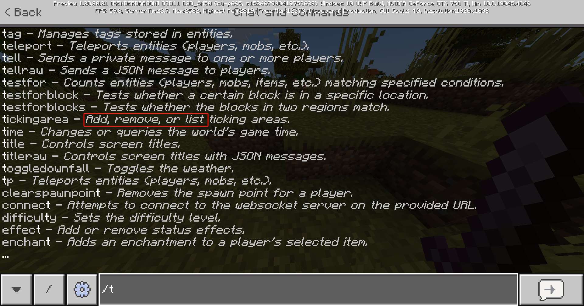 damage, effect, fog, gametips, tickingarea, volumearea