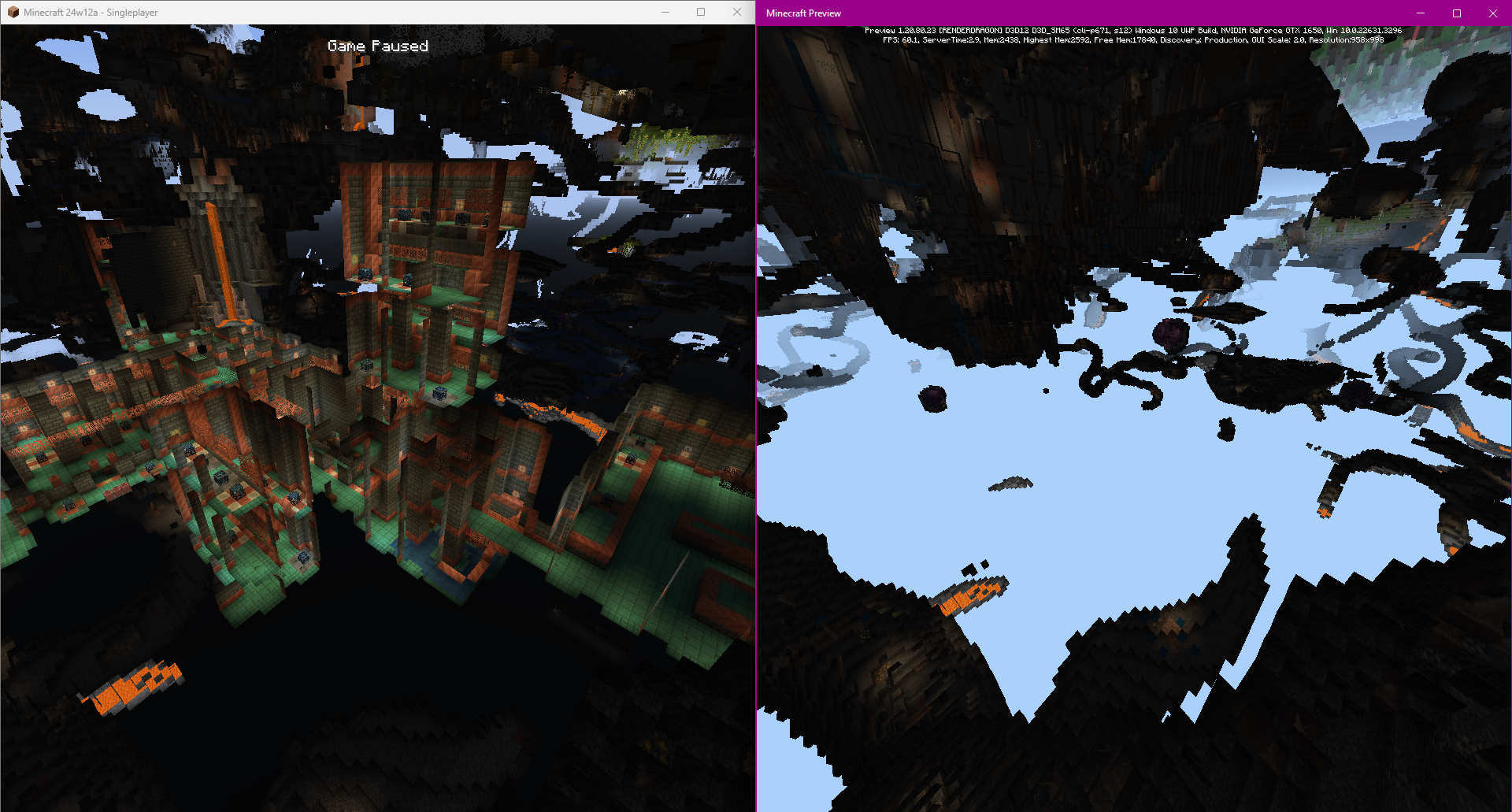 1. Use any seeds, for this ticket, I use seed 12. Run both Java and Bedrock.