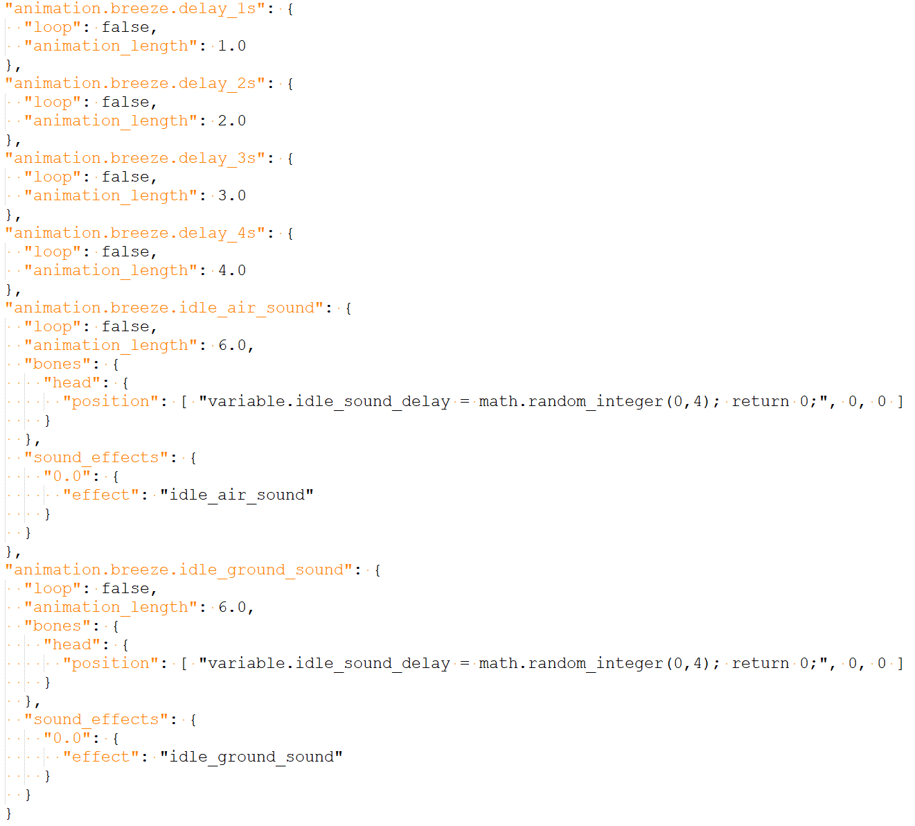 In addition to the randomized ambient sound from sounds.json, idle_ground is played every 6 seconds consistently due to the idle_ground_sound animation in breeze.entity.json. This sound also plays without respect for if the Breeze is grounded or not.