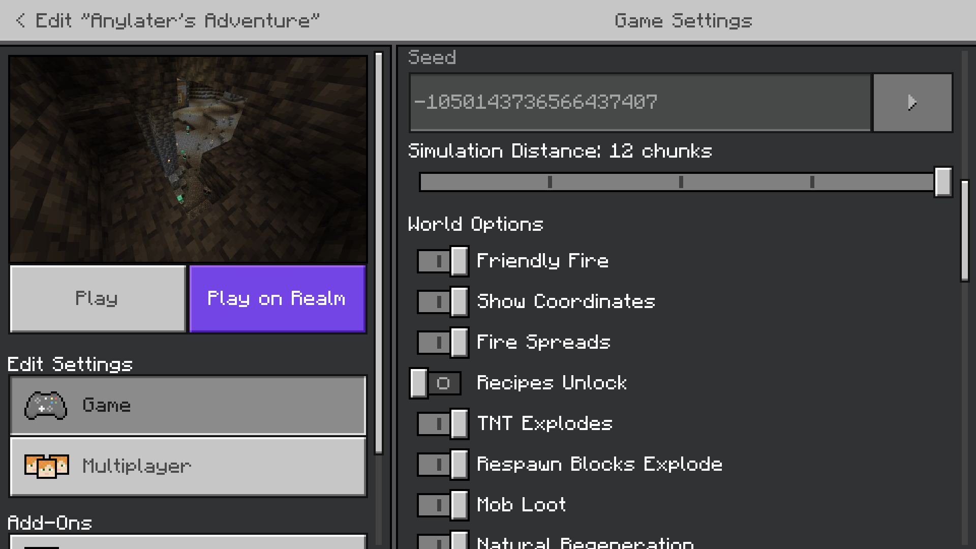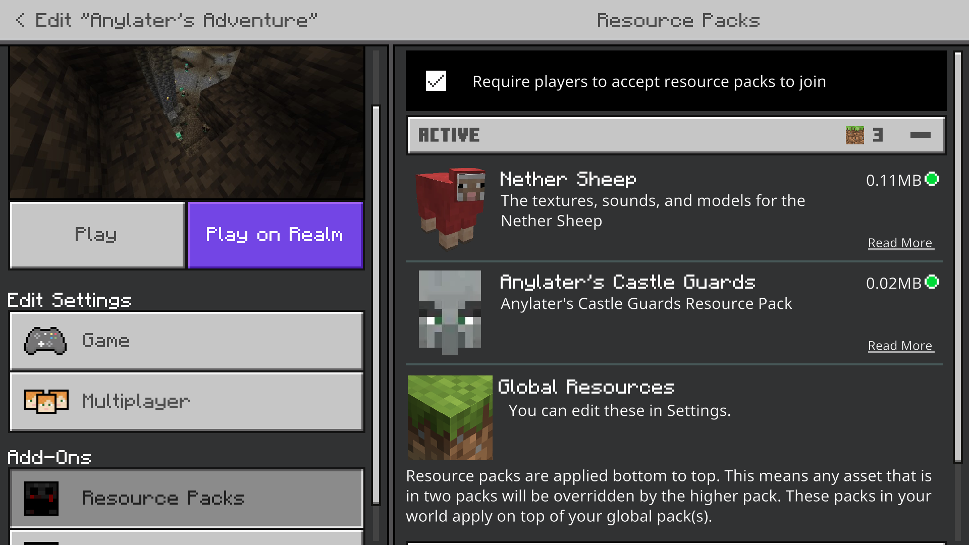 The world being played in had a few custom created resource and behavior packs that did nothing more than add a few mobs to the game