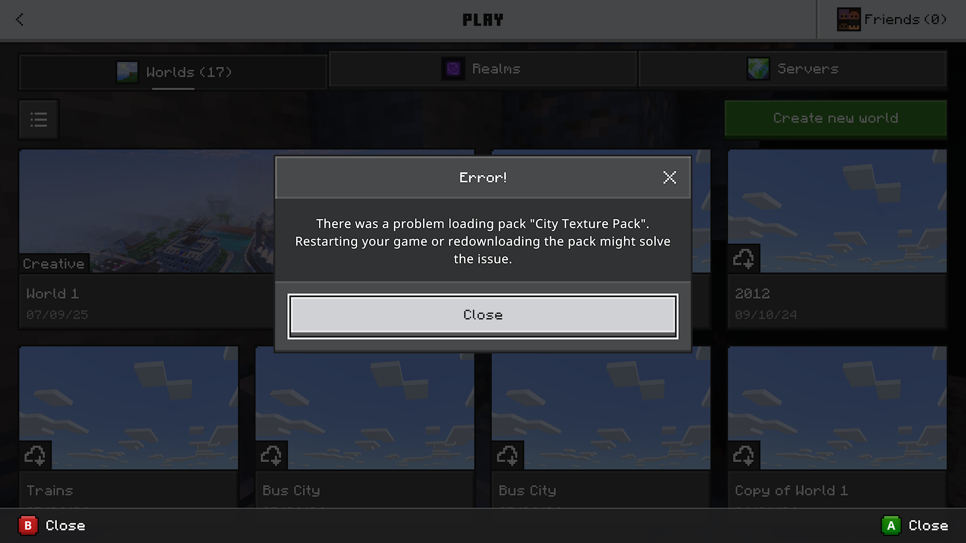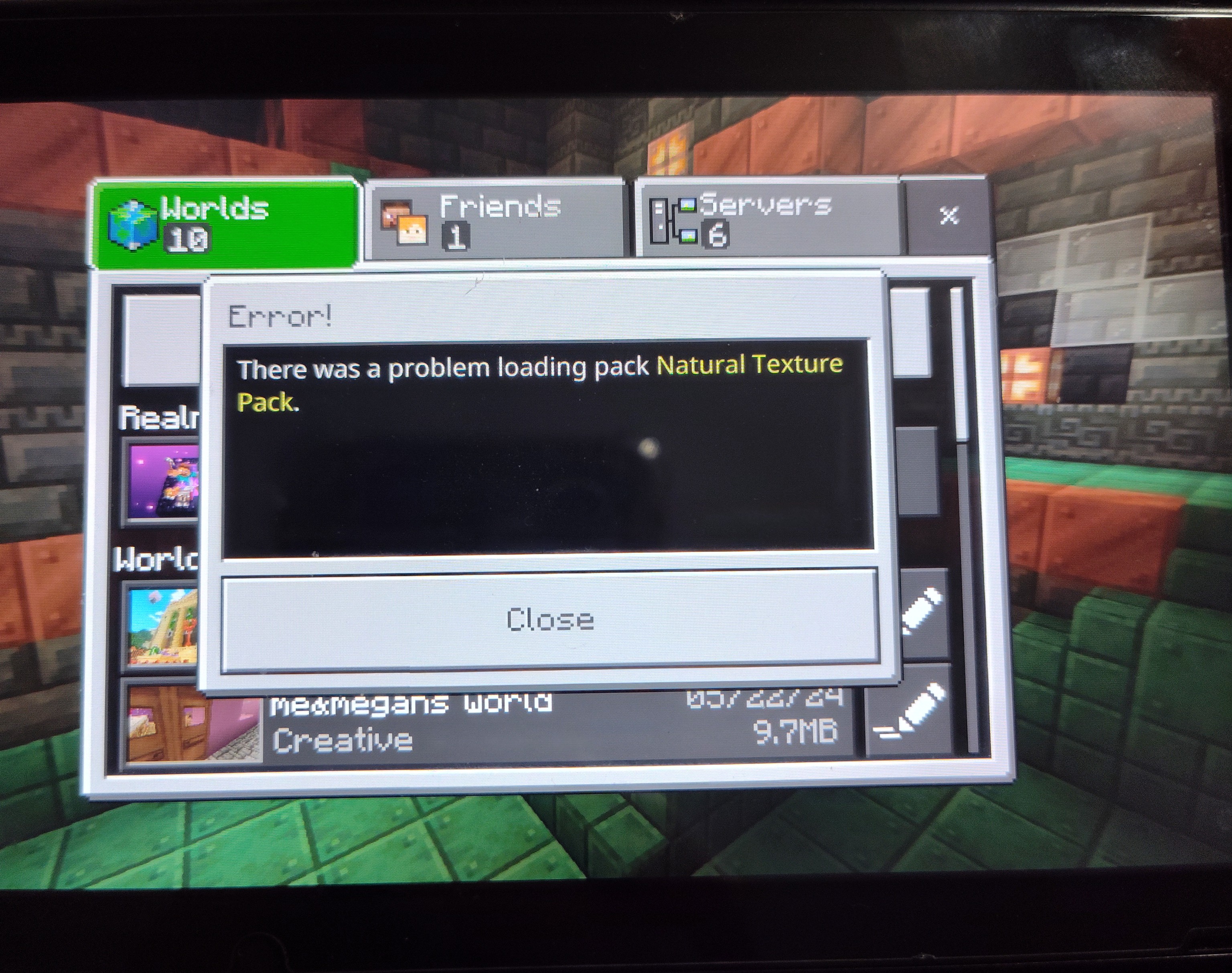 Last night, I updated minecraft on my switch. After the update, I tried to login, however, the error message ‘There was a problem loading Natural Texture Pack’ appeared. I have tried to delete/ uninstall and then reinstall the texture pack, restart my switch/ minecraft, but I cannot use the natural texture pack. I downloaded the city texture pack and this works just fine along with the OG minecraft texture. My world has been created using the natural texture pack and it just looks awful in any other texture pack! I’m hoping it’s just a bug and can get sorted soon! Please let me know if anyone else is having similar issues.