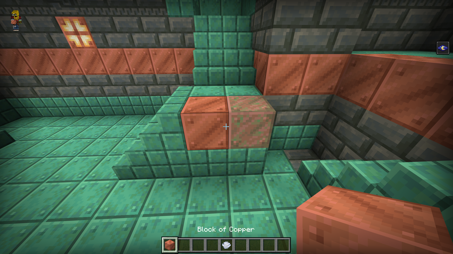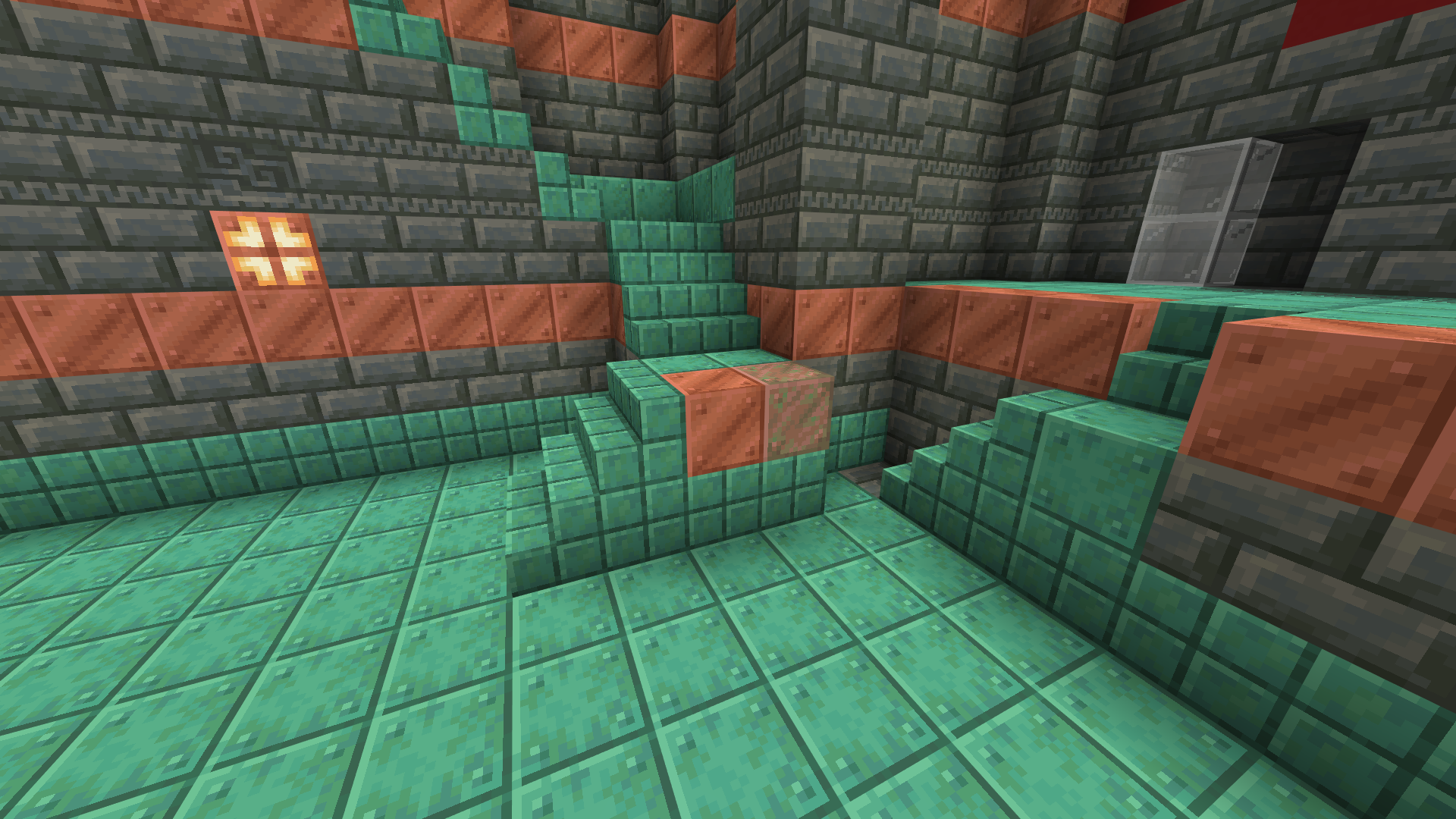 The stairs in the atrium are made of the wrong type of copper blocks. They are normal copper blocks and not a waxed variant.
