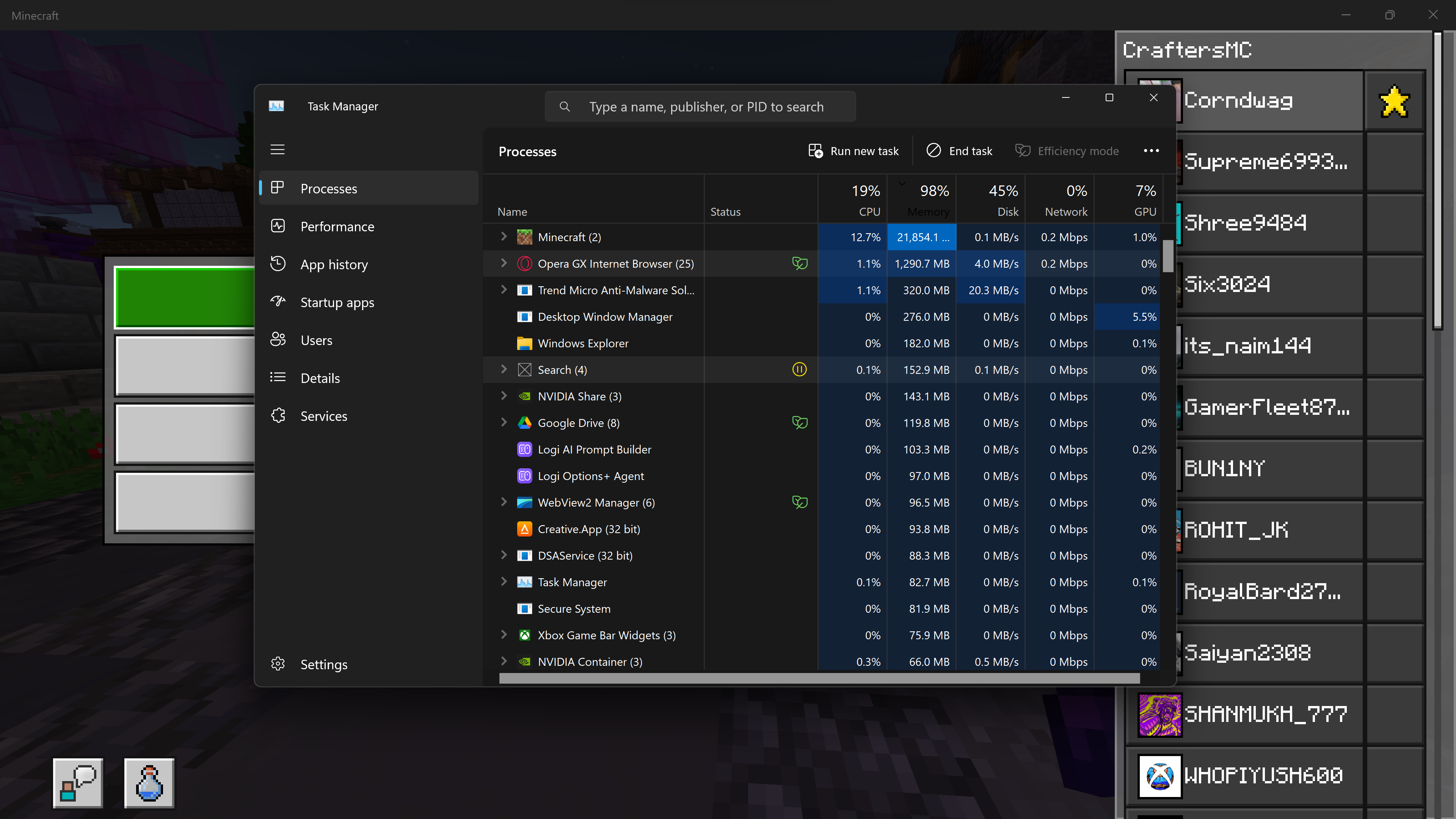 Minecraft using 20+ Gigabytes of ram, and constant frame drops