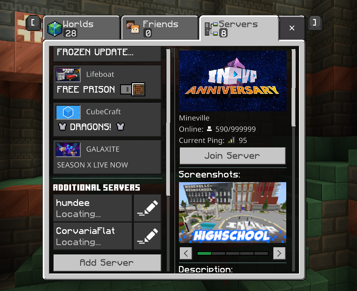 Scrolling down the list of any featured server brings you back to the very top when message of the day updates.