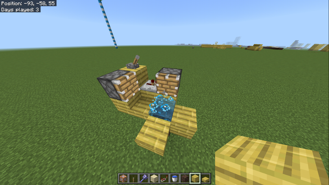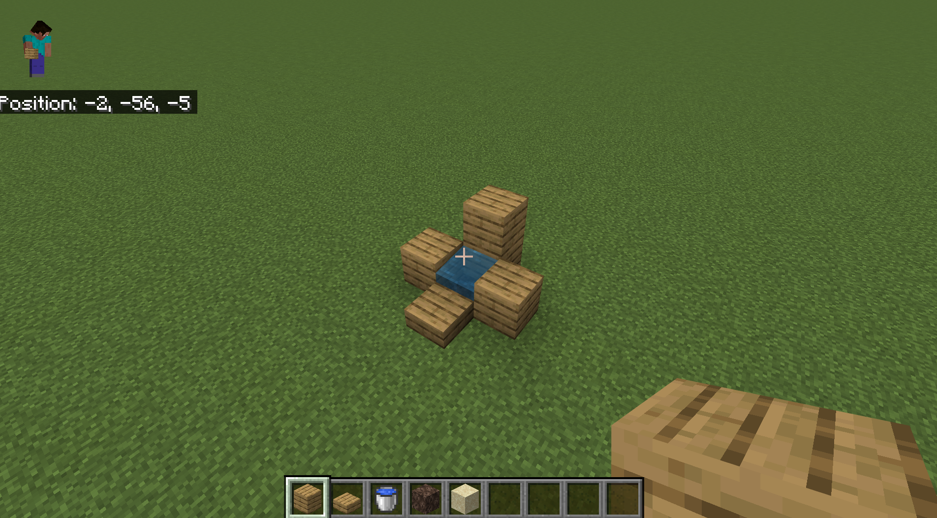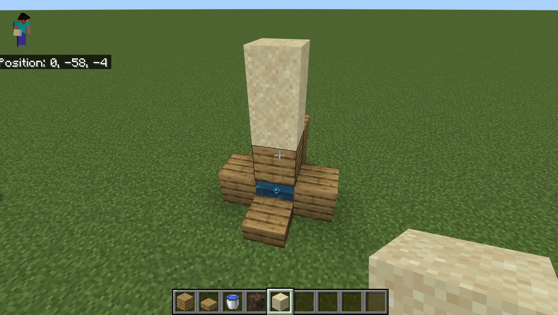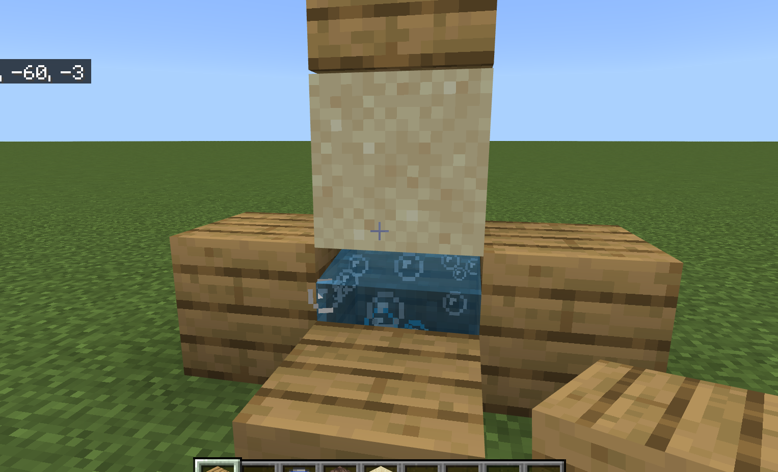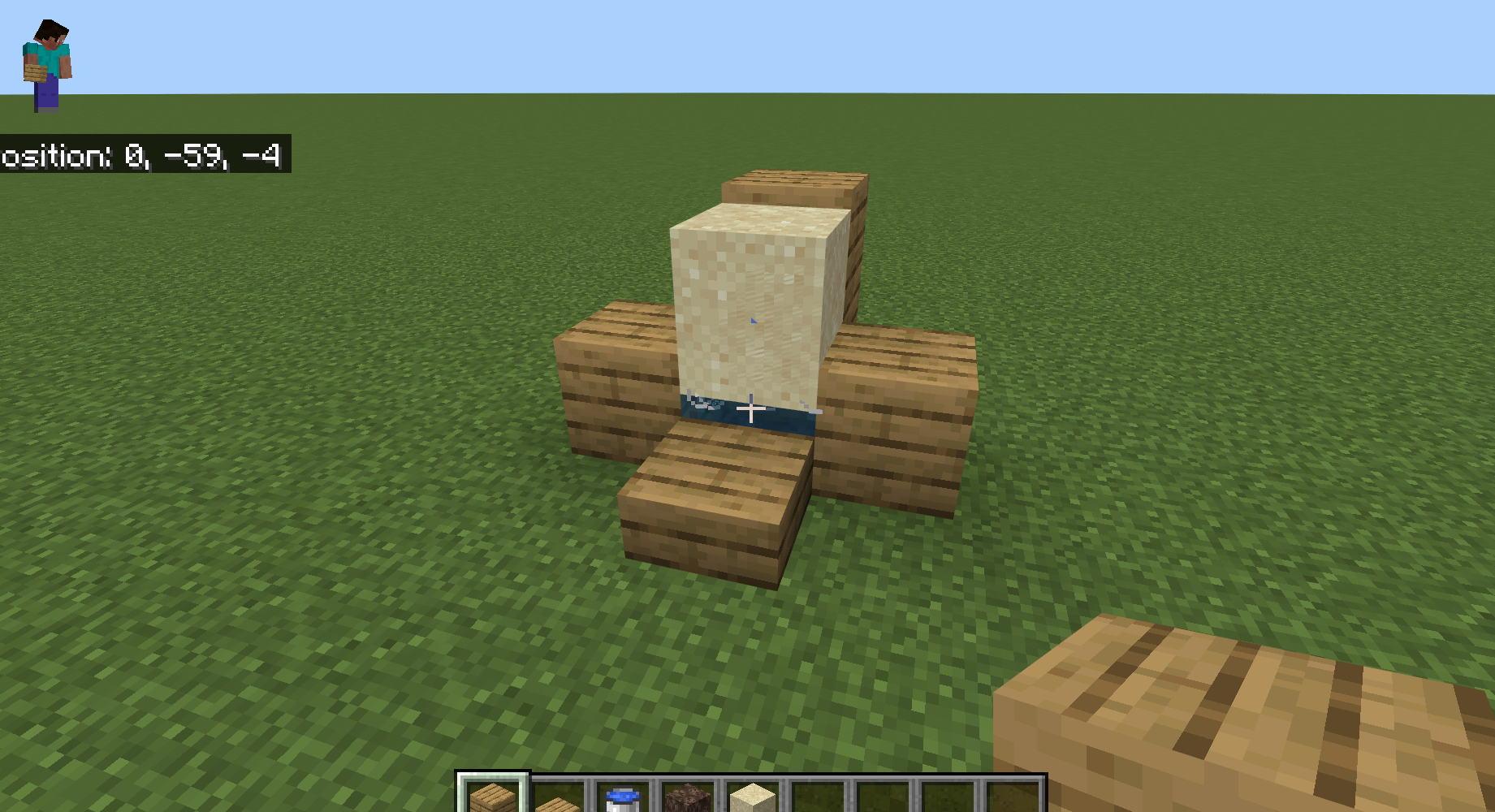 To replicate this, get a small container with water and a soul sand underneeth as seen in the video, making sure there is a half slab allowing for you to interact with the soul sand after completing the next step.