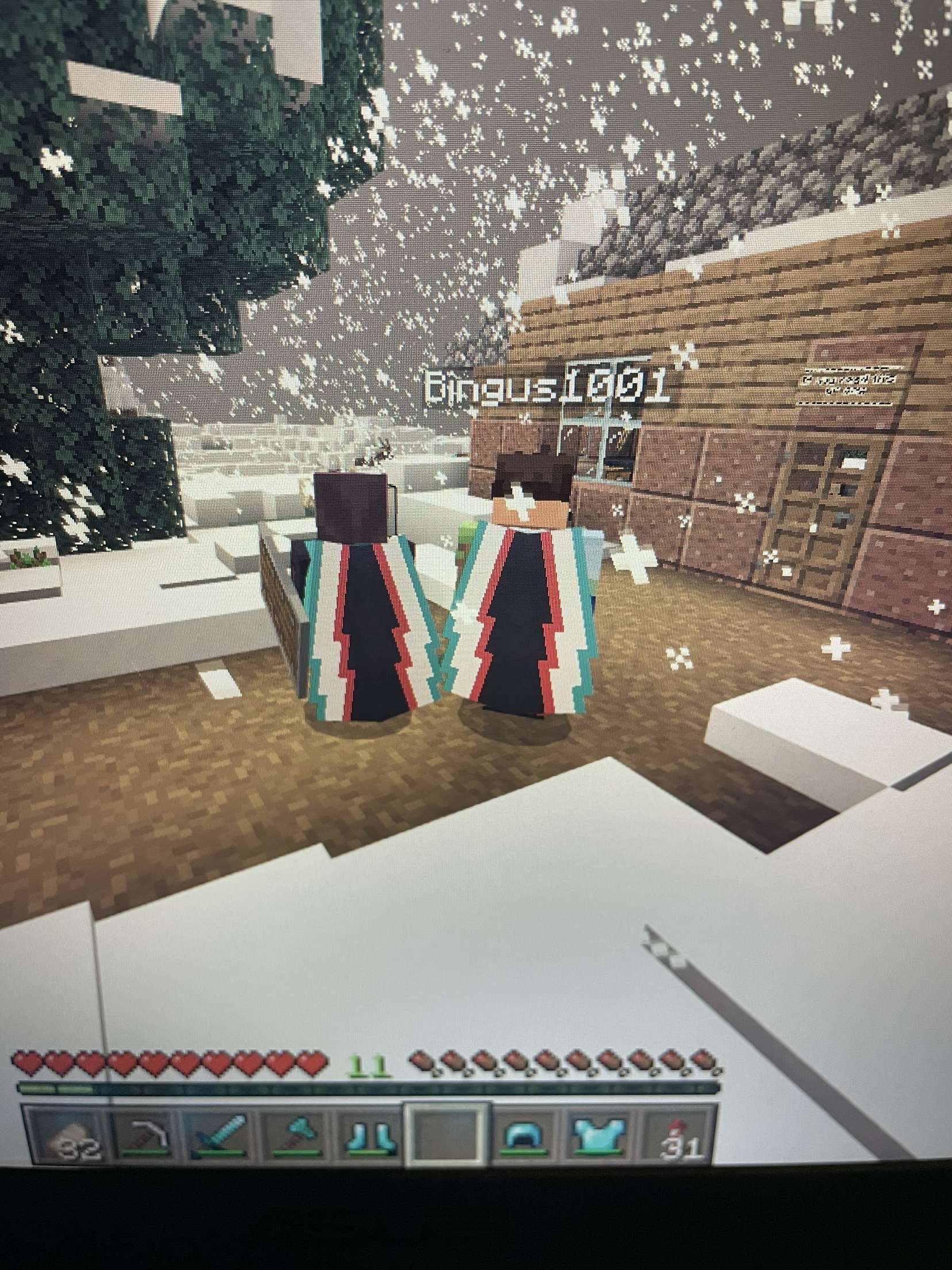 While on Realms, when standing near another player, the cape that the player you're standing near becomes the elytra texture and vise versa. Haven't tested if this is just a realms thing but all these images were taken within seconds of each other.