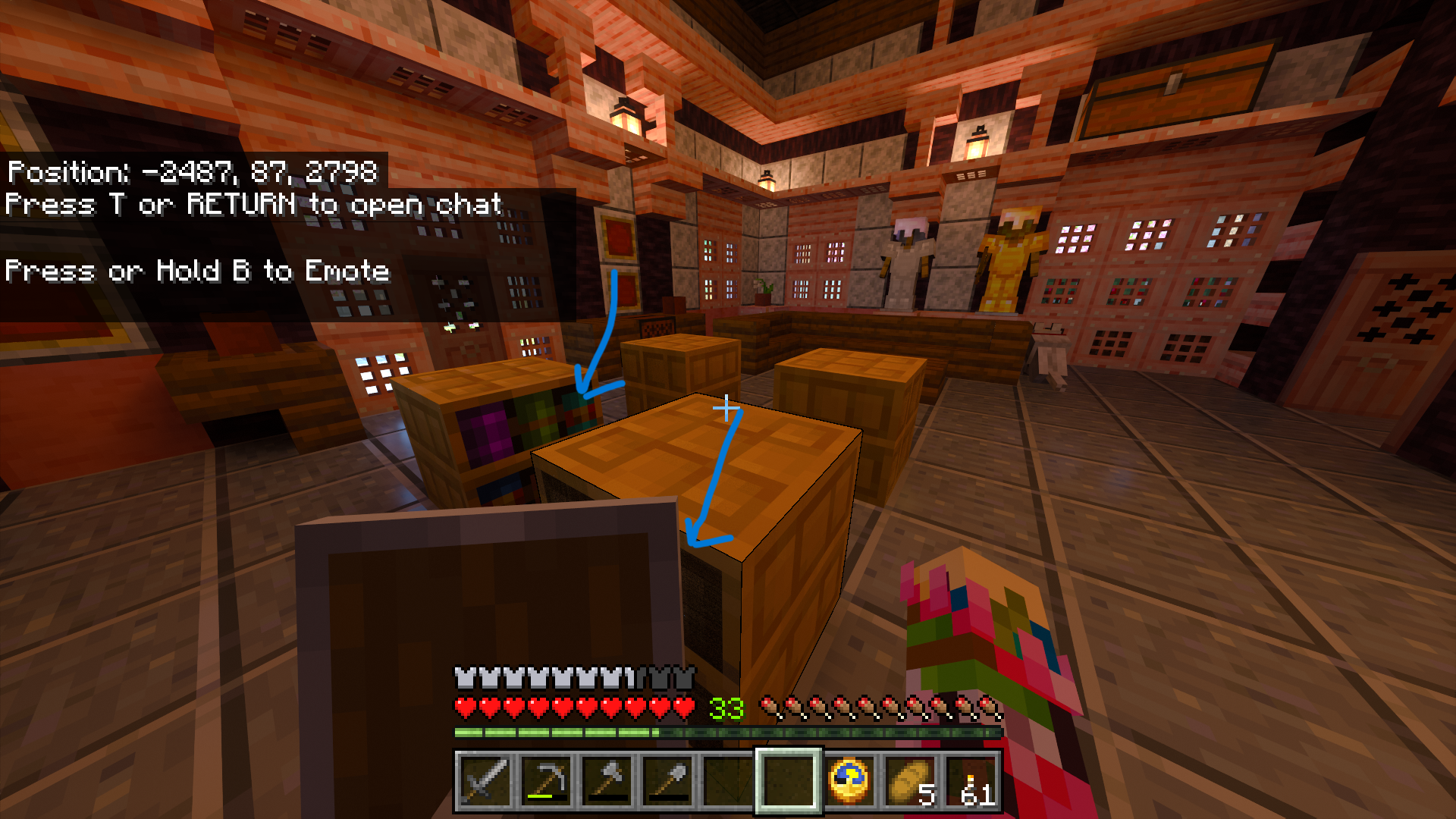 In a Minecraft world create x4 chiseled bookshelves. Place them so that the front of the bookshelf displays in different directions.