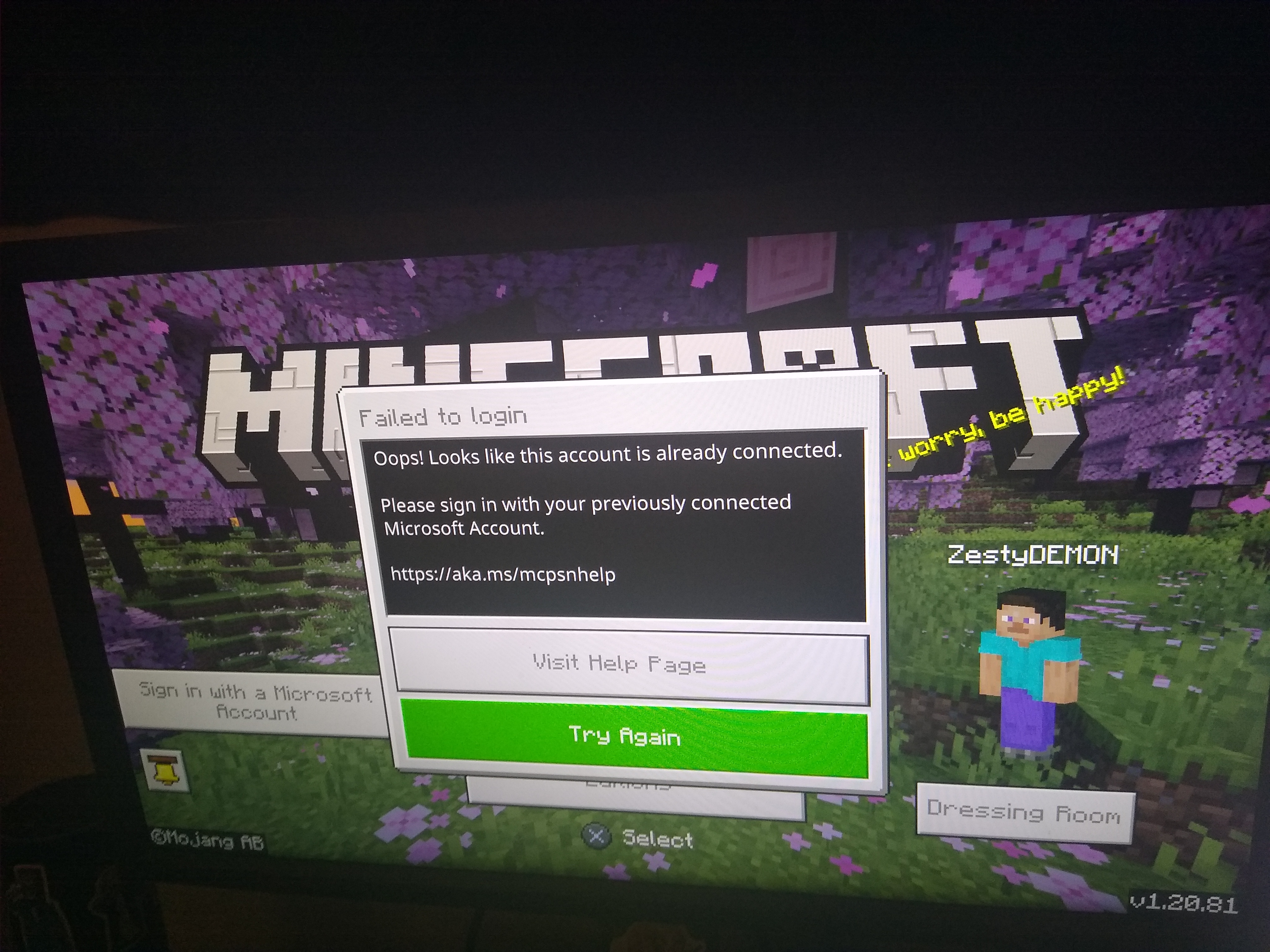 After over 4 years, I have still been unable to link my current Microsoft account with the PSN account I have Minecraft on. This may or may not also affect other Microsoft games on that platform, rendering my purchases useless. Clearing save data, restarting, reinstalling, and changing emails for both accounts did not solve the issue. Apparently only one Microsoft account can be linked to a PSN account, and the Microsoft account formerly linked to my current account has been deleted. I refuse to create a new PSN account to access this game. I have attached an image of the error as of 26/5/2024, and would like this to be resolved in the next major update.
