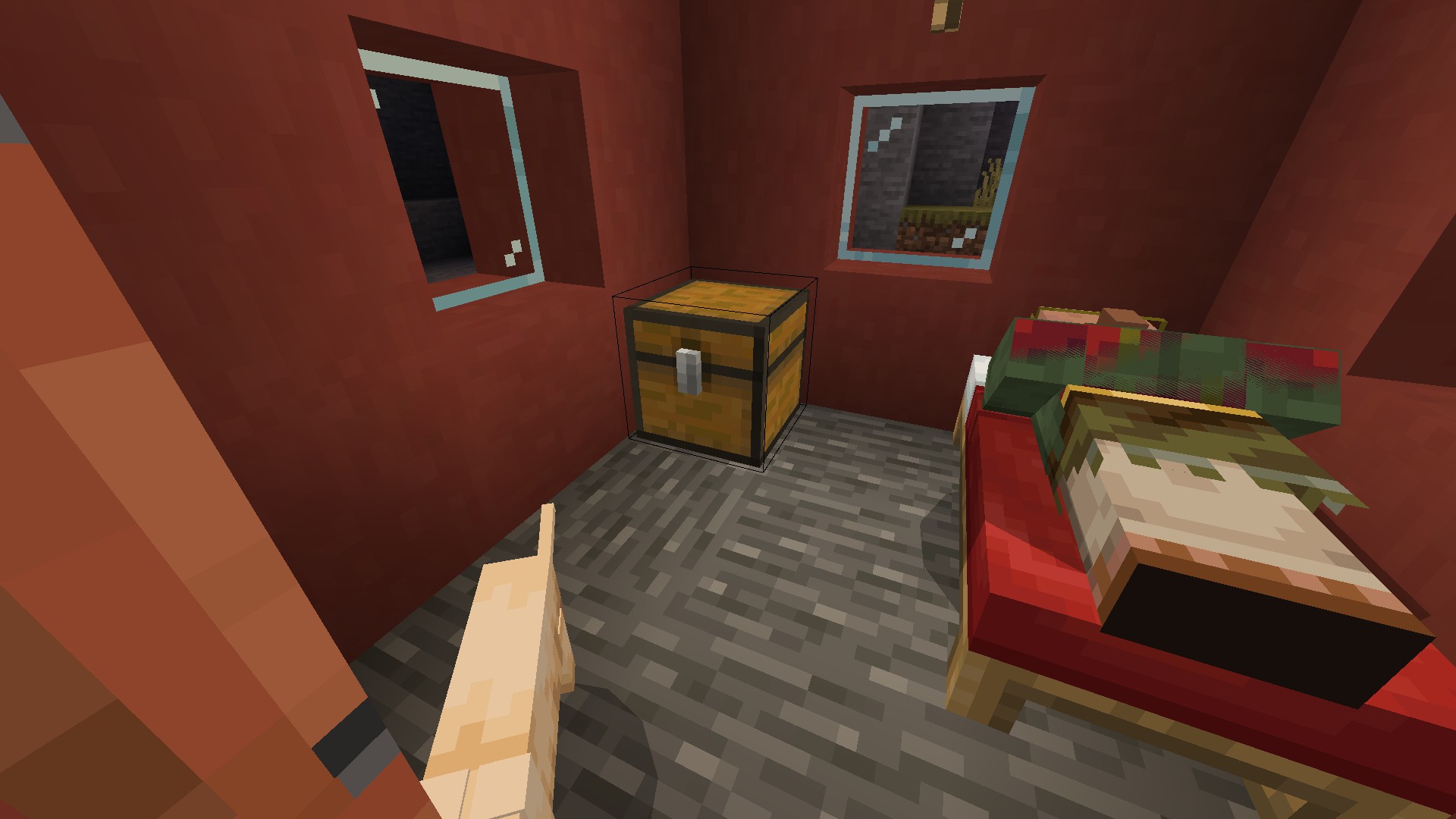 Noticed some Z-Fighting with a Villager's lower arms and hands while he was sleeping.