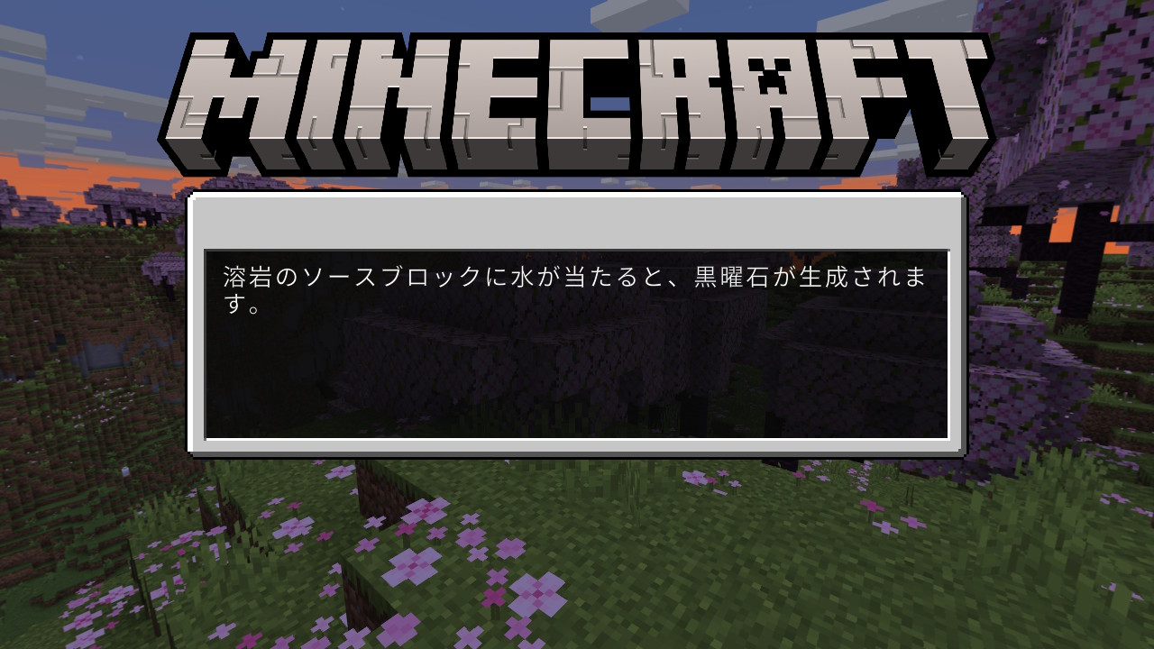 溶岩のソースブロックに水が当たると、黒曜石が生成されます。 | 溶岩源に水を当てると、黒曜石ができます。 | The explanation is incorrect, illegible |
